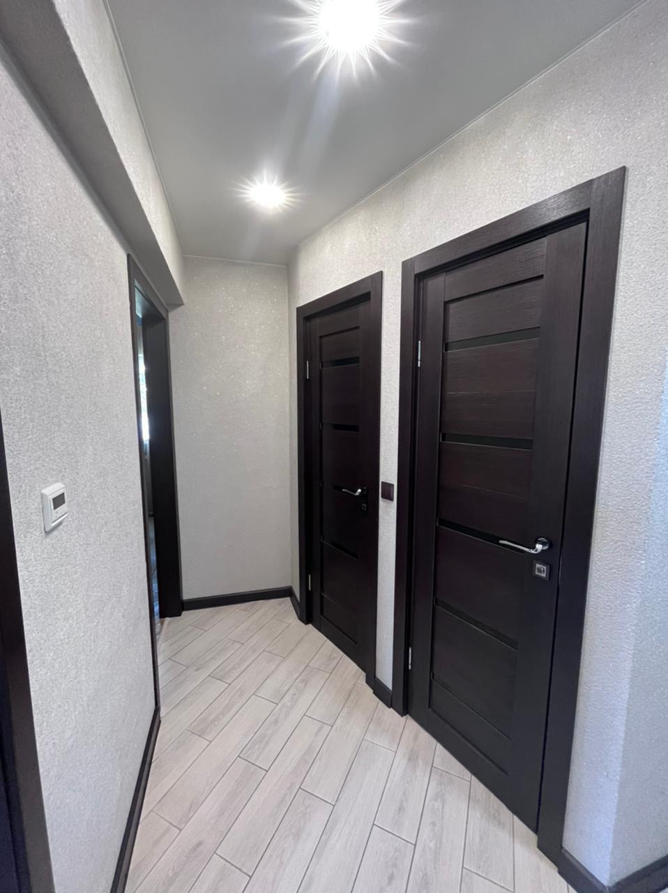 В квартире 3 комнаты: кухня-гостиная, спальня и большая комната, сан узел раздельный! Имеется так же гардеробная-кладовая! Большой просторный коридор!
