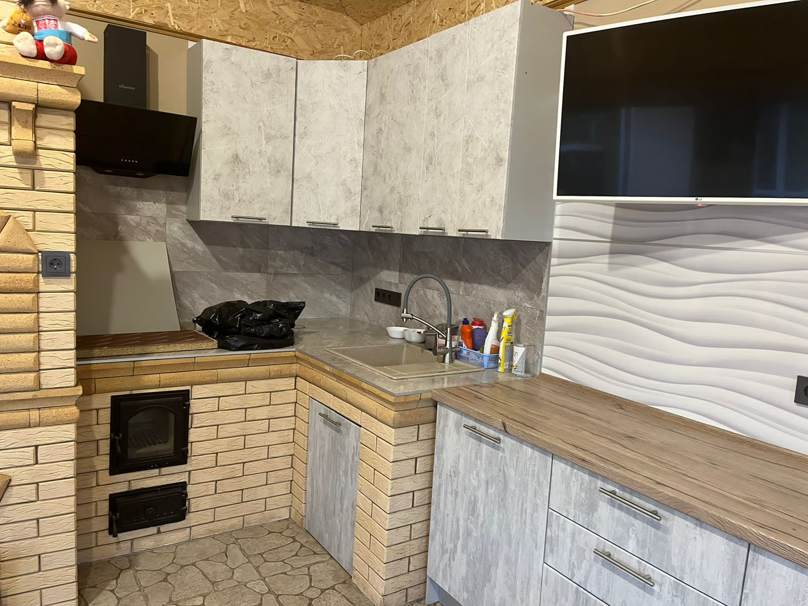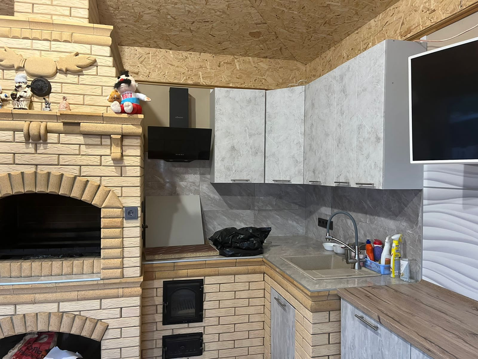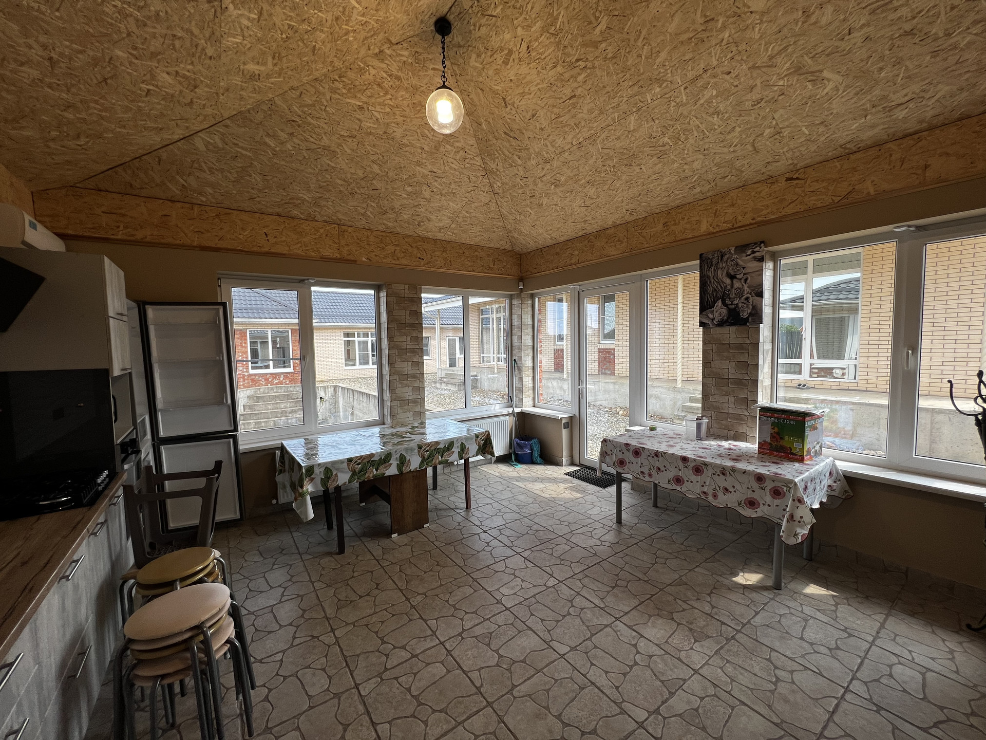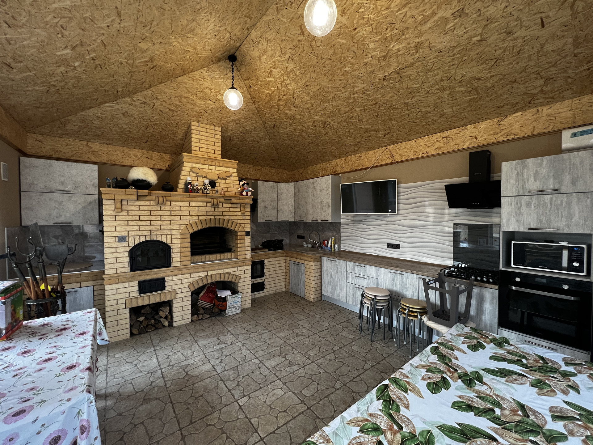 -На участке: дом,справа от дома машиноместо под навесом, хозпостройка в которой две кладовые,котельная с двумя котлами(у каждого своя функция),бойлер,вся разводка для отопления(радиаторы,теплые полы,горячая вода,в том числе и бассейн),электрораспределитель с трансформаторами от перепада напряжения,система очистки воды; далее банный комплекс:сауна,душевая,санузел,комната отдыха,комната для посиделок; за домом недостроенный бассейн с подсветкой и подогревом; летняя кухня с мангальной зоной.