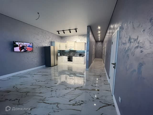 Ремонт выполнен из дорогих материалов. На полу широкоформатный керамогранит, в спальнях - ламинат. Установлена качественная сантехника, кухонный гарнитур и бытовая техника.