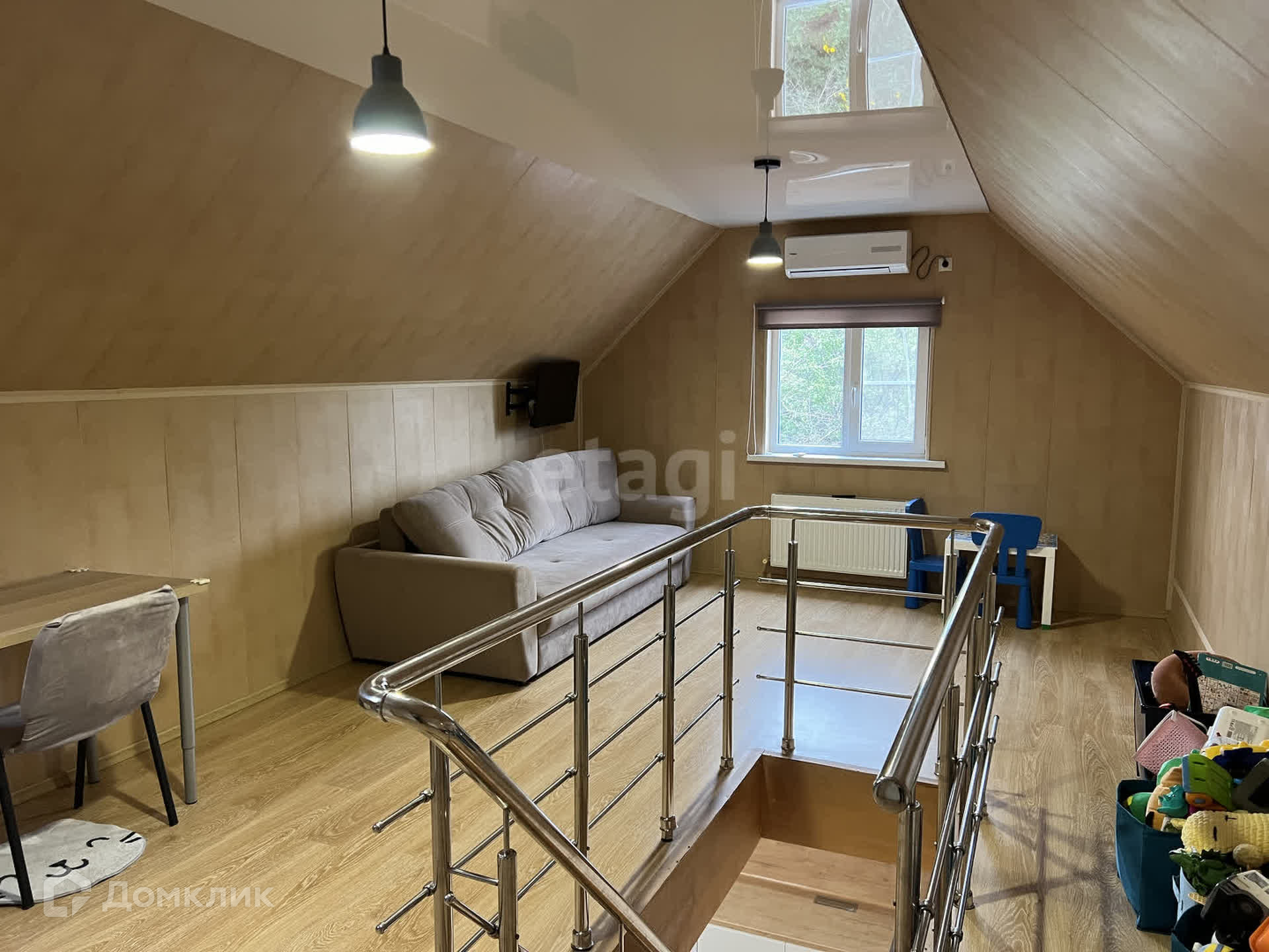 Второй этаж - Большой хол с телевизором. Новый диван. Кондиционер + Изолированная комната, Есть так же чердак 20 кв. Который без труда можно переделать в комнату.