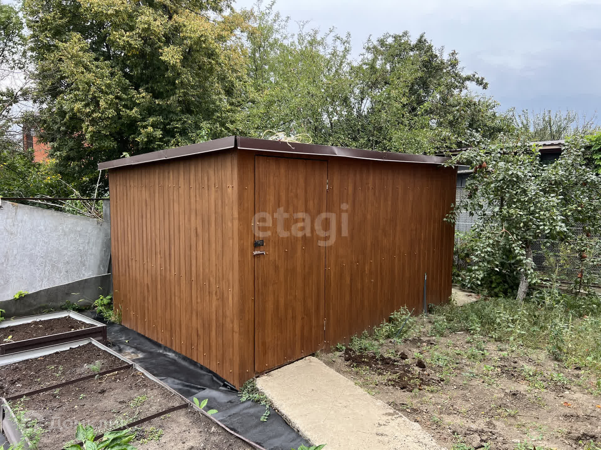 Сад: 2 черешни большие, 2 Груши, персик, слива. Оборудованы грядки .