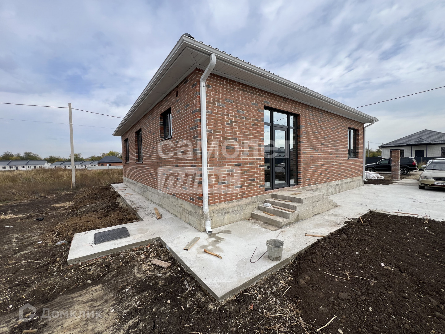 Двор: фасад кирпичные колонны, металлопрофиль, откатные ворота,калитка, отмостка и машиноместо бетонные.