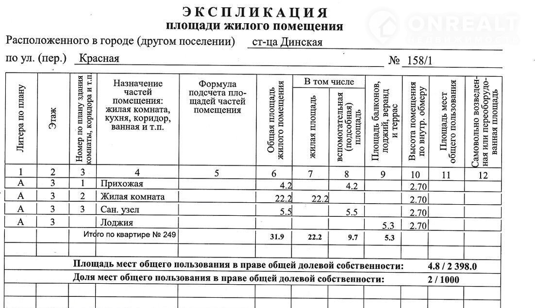 Квартира студия, 39.1 м2, этаж 3 / 7, на продажу в станице Динской, Красная улица, 158/1