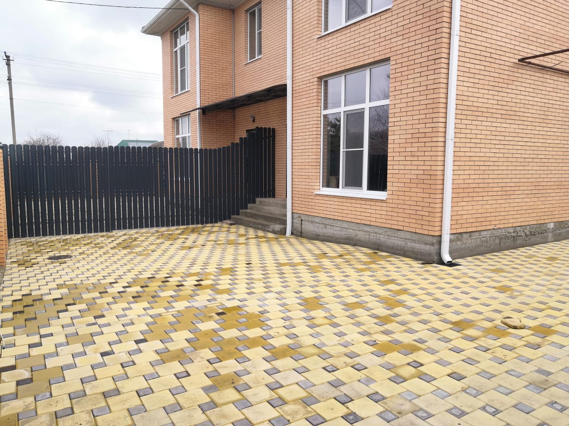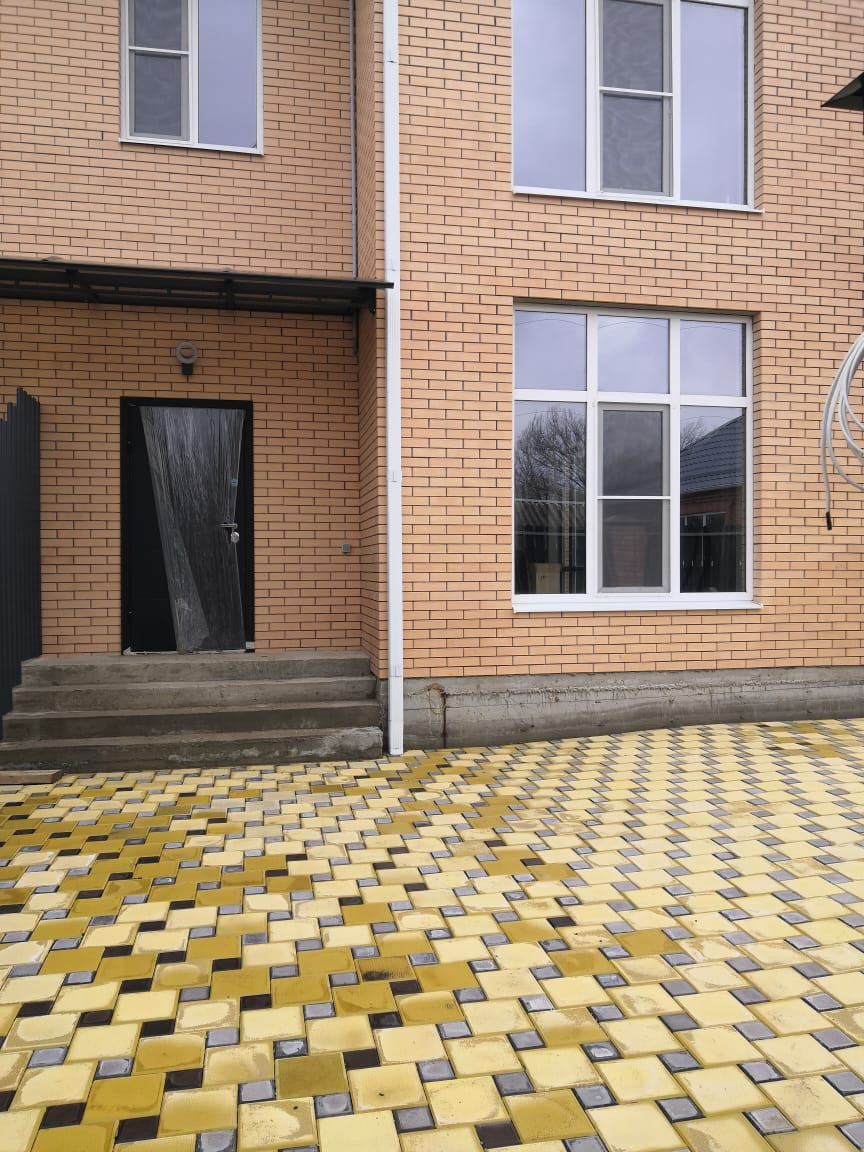 Продаётся дом-таунхаус ст. Динская ул. Гоголя, 121/ 55/ 40, кирпич. 1-эт: кухня-гостиная 40 кв.м, санузел, прихожая, кладовая. 2-эт: 3 комнаты, гардеробная, санузел. Черновая отделка, 2 входа/ выхода, перекрытие монолитное. Двор плитка на 2-3 легковых авто. Крыша металлочерепица, металлопластиковые окна, забор евроштакетник с кирпичными колоннами. Земельный участок 2 сотки, ИЖС. Подъезд асфальтированный. Газ, вода, эл-во 3 фазы 10 кВт центральные. Рядом школа, детский сад, магазины, Комсомольский парк, река Кочеты, спорткомплекс, бассейн, остановка общественного транспорта. Отличная возможность сделать чистовую отделку по вашему вкусу. Рассмотрим ипотеку, материнский капитал, документы готовы к продаже.