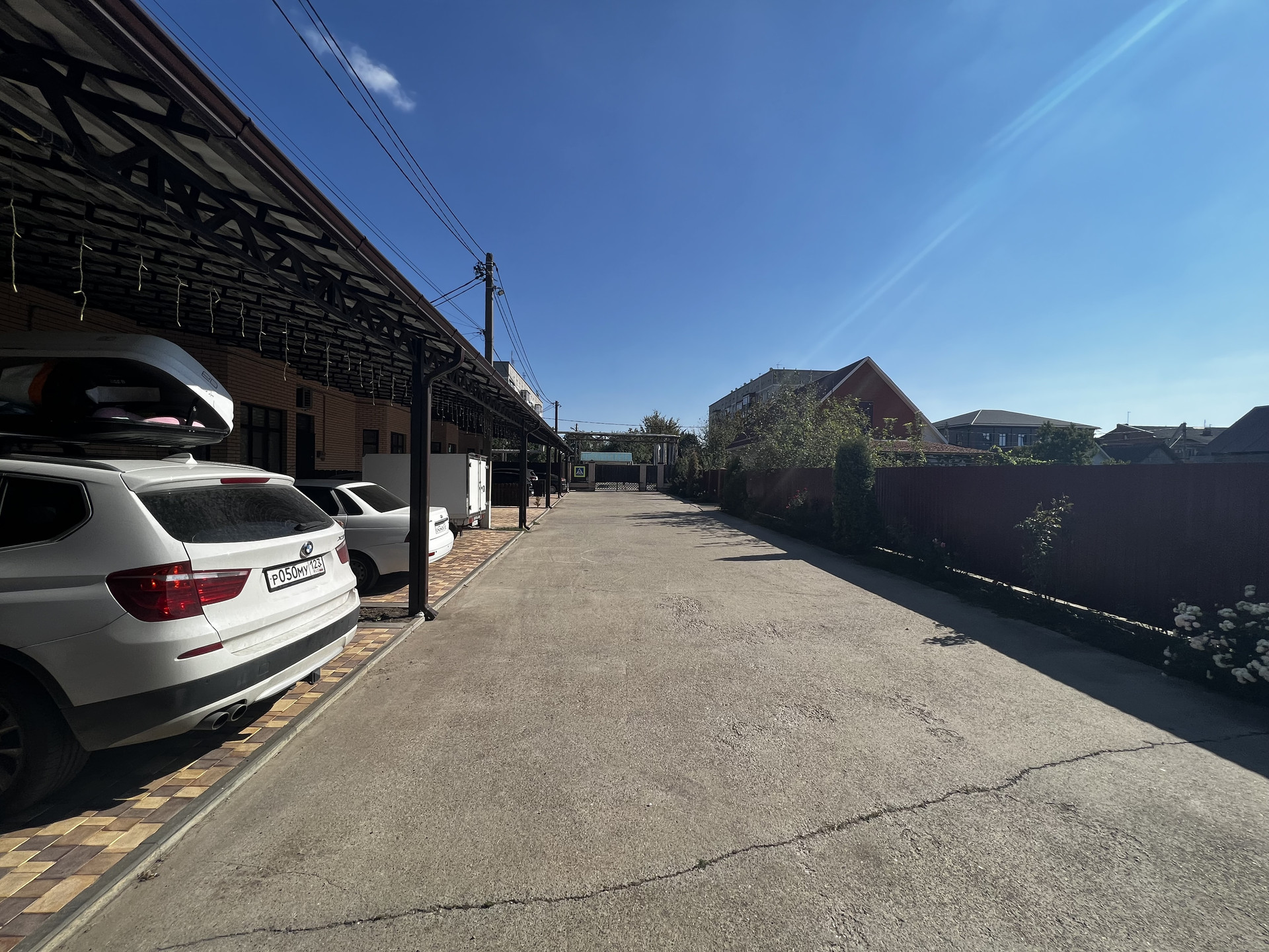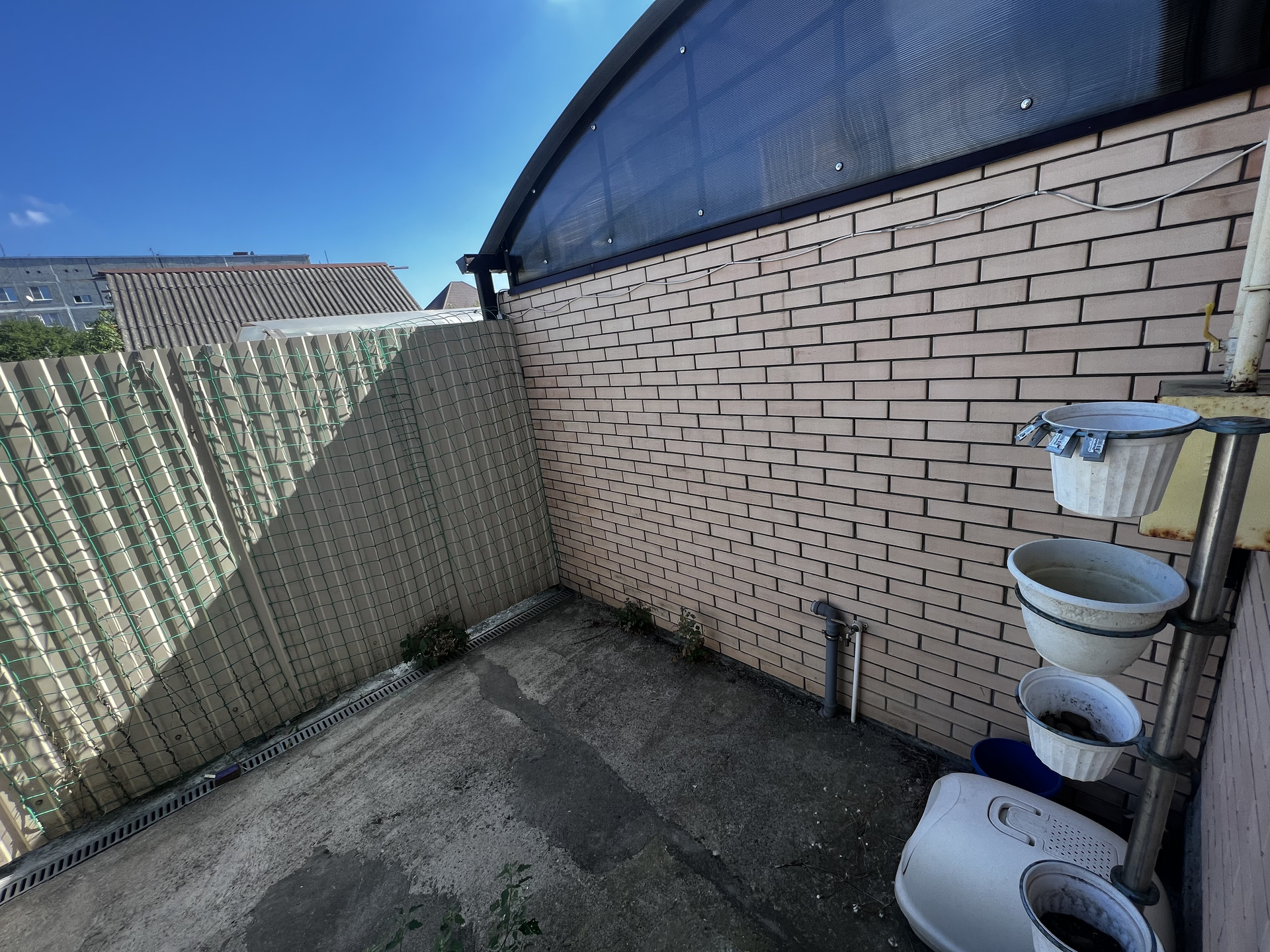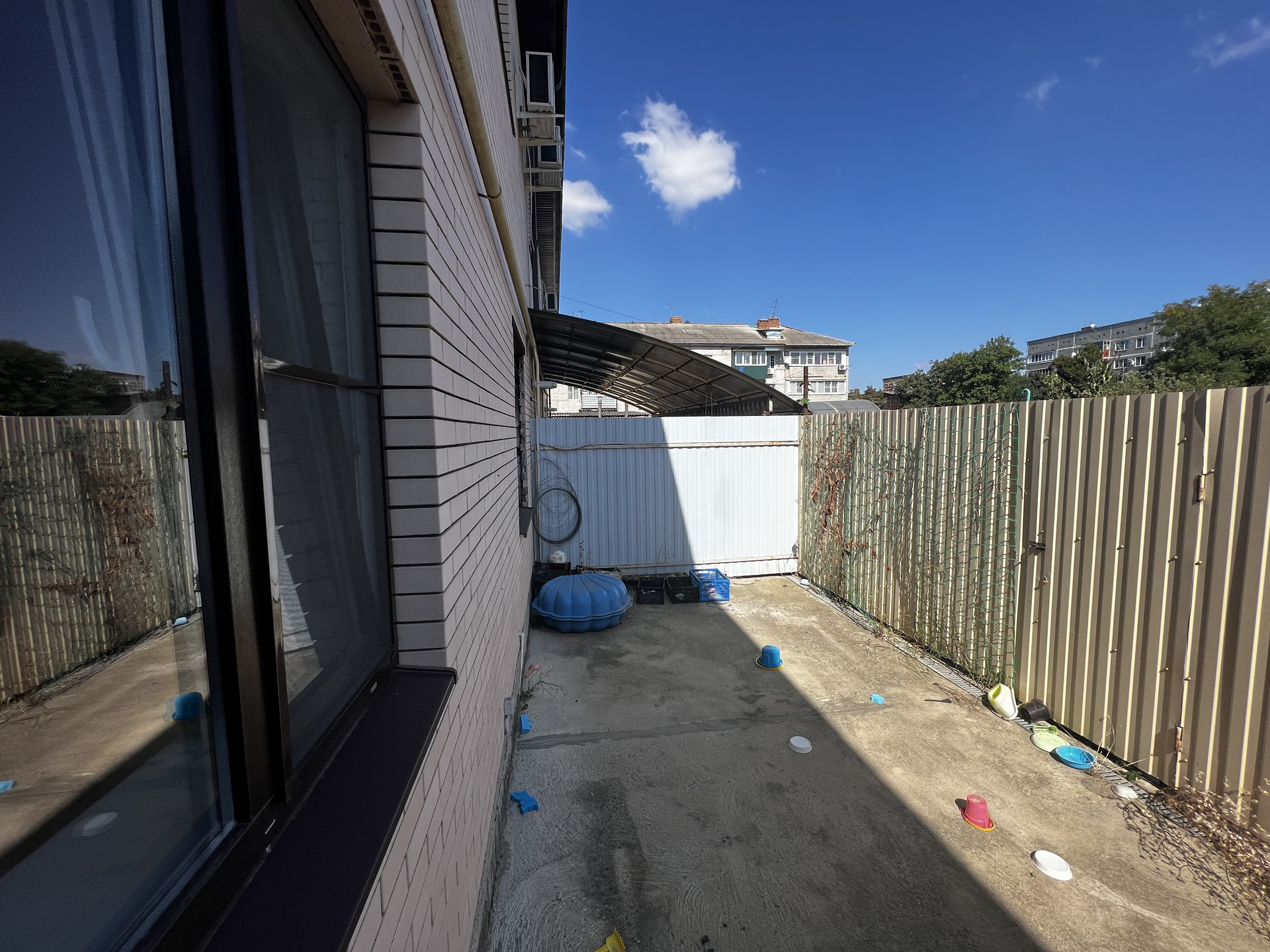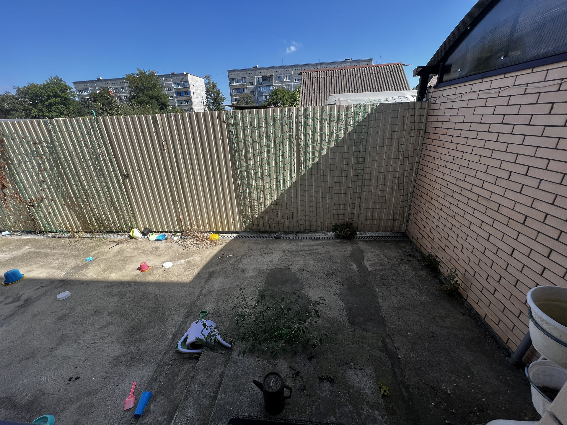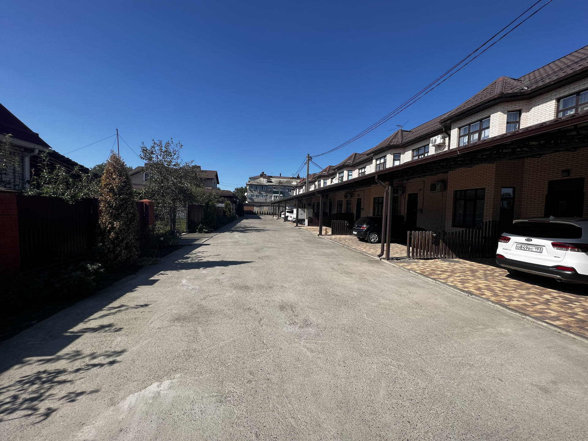 Благоустроенный общий передний двор, сзади терасса 8х3.