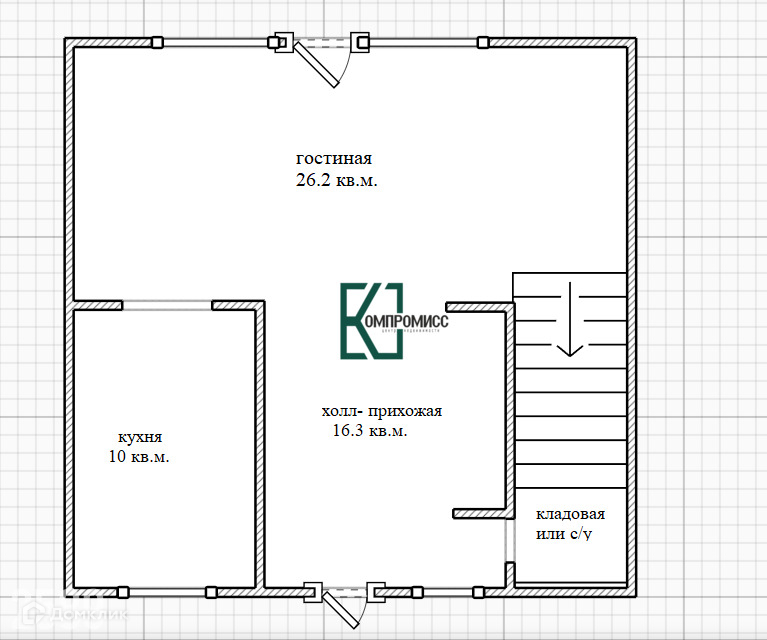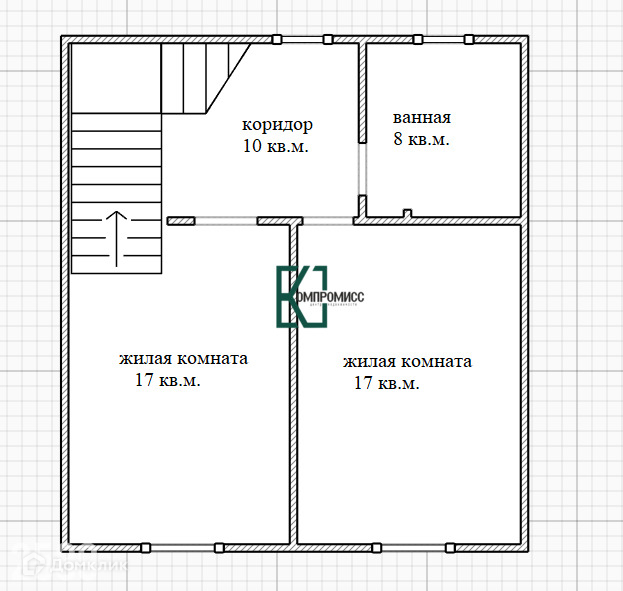 Общая площадь 105 кв.м., 52.5 кв.м. на каждом этаже. Полноценный второй этаж. Черновая отделка.