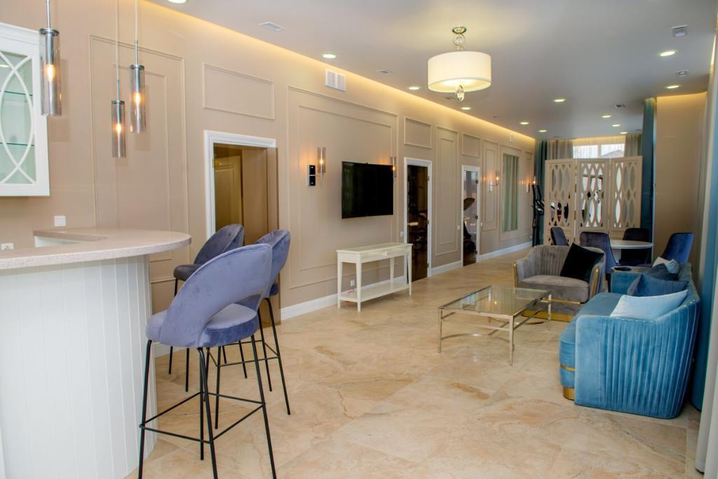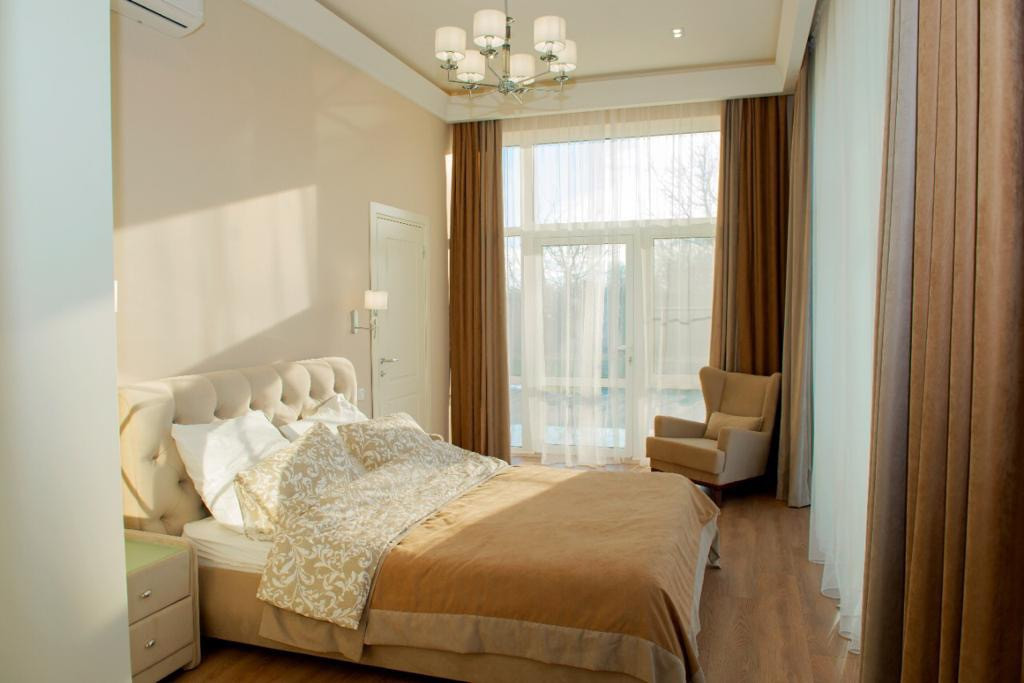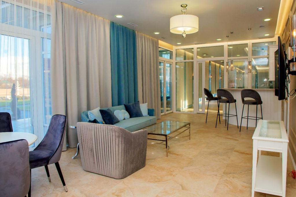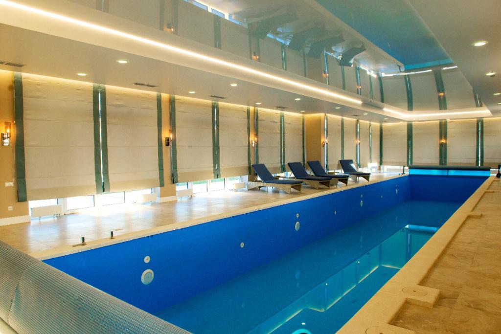 Бассейн длиной 20 метров,барная стойка,зона отдыха,тренажёр зал,баня,хамам,с/у.
