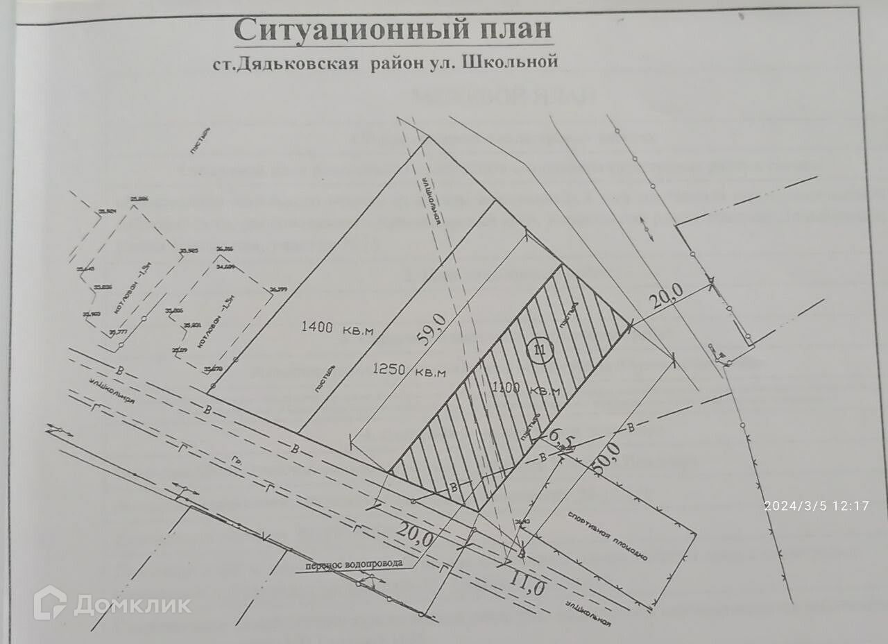 Земельный участок площадью 11 соток в ст. Дядьковской, фасад 20м , длина участка 50 м. Все коммуникации напротив.  709890