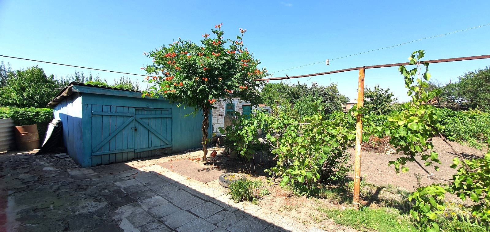 Во дворе гараж, летняя кухня и погреб.