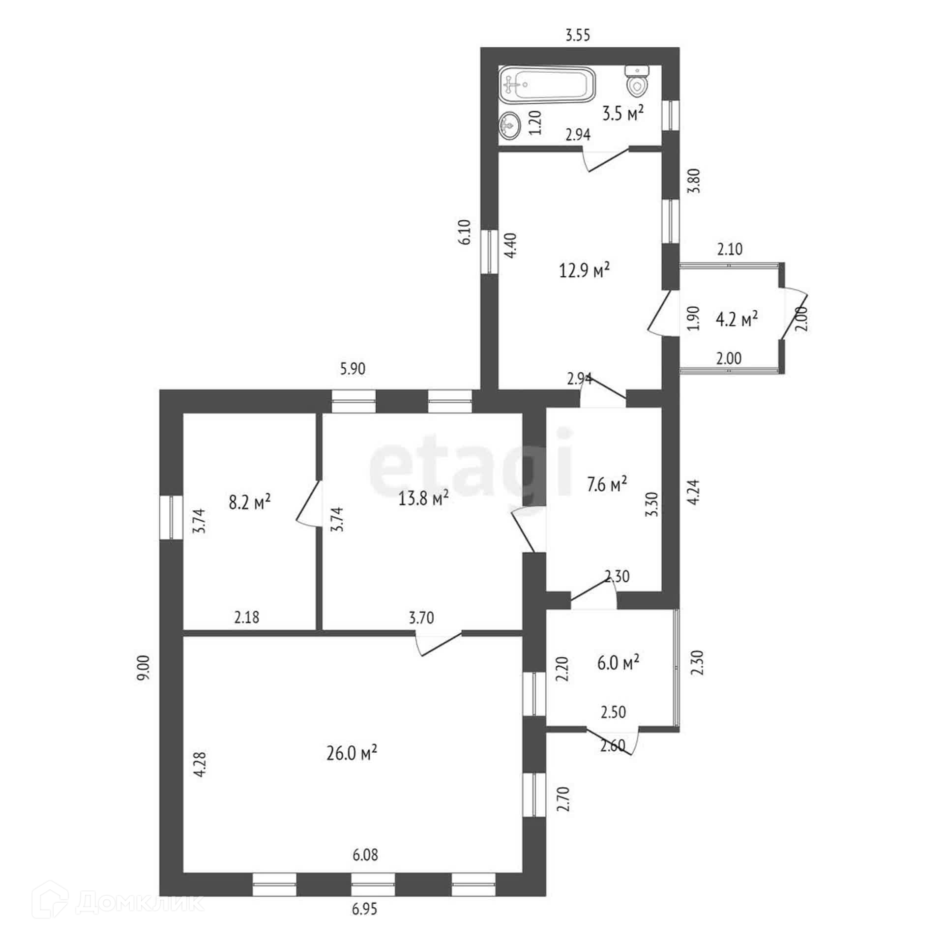 В доме 5 комнат, санузел, 2 входа. Дом тёплый, крепкий без трещин, фундамент сделан из бута, укреплен ж/д рельсами.