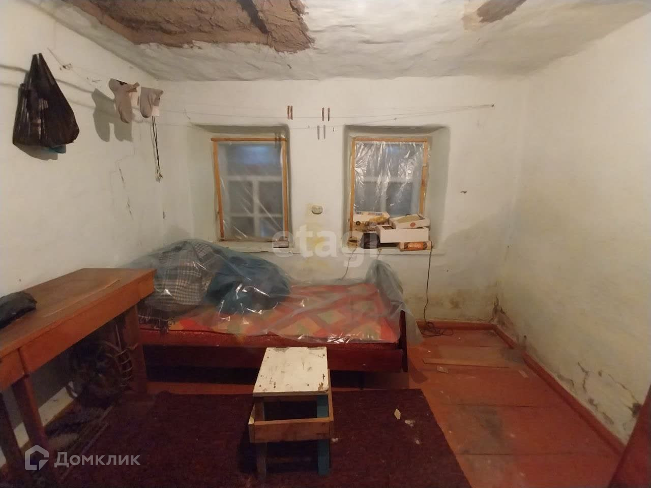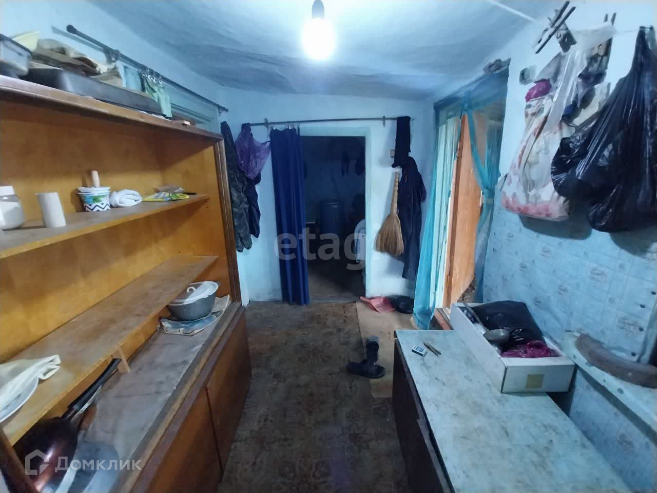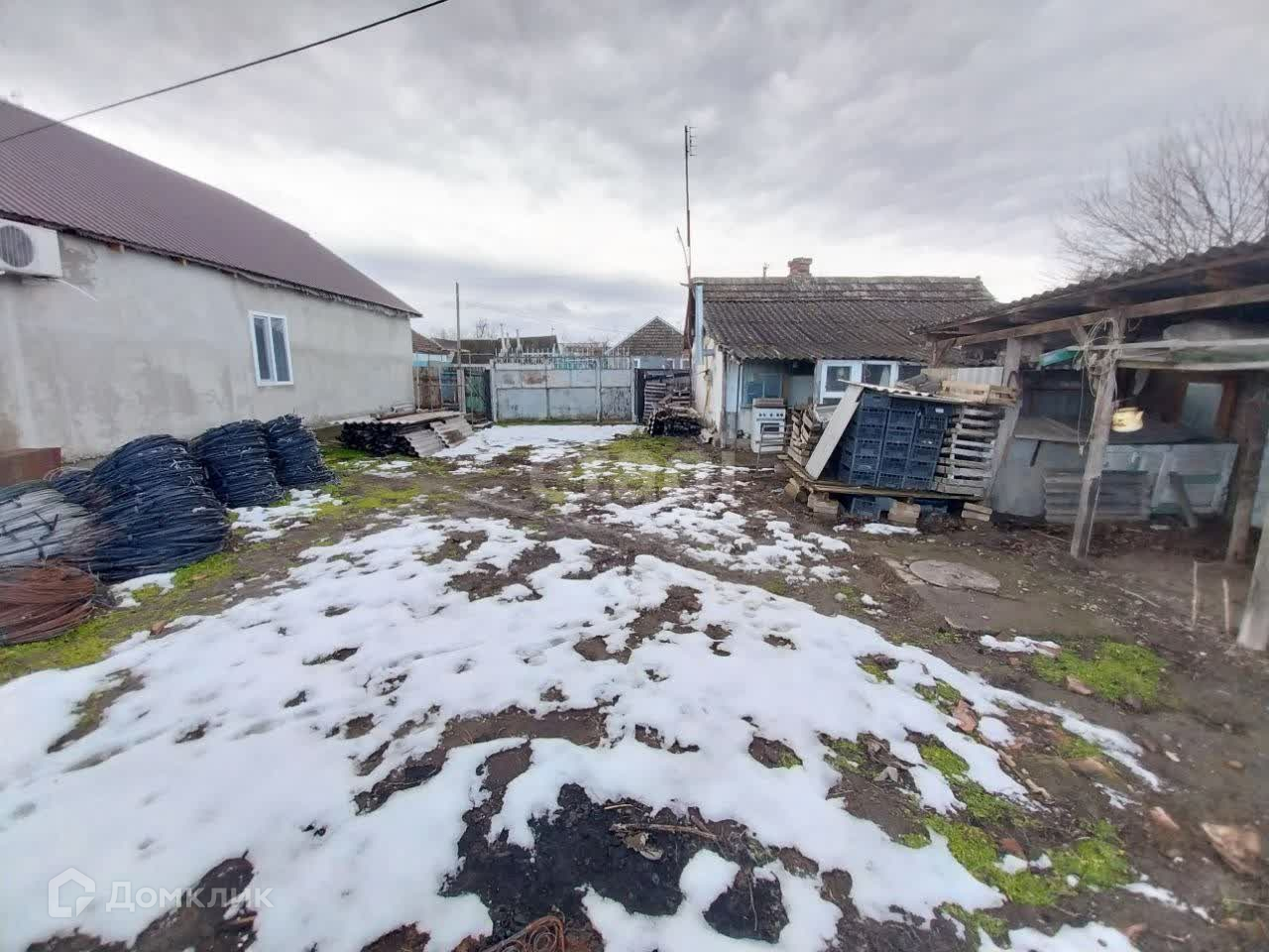 На участке расположен старый саманный дом, в нем две смежные комнаты, небольшая кухня и ванная комната. Туалет на улице.