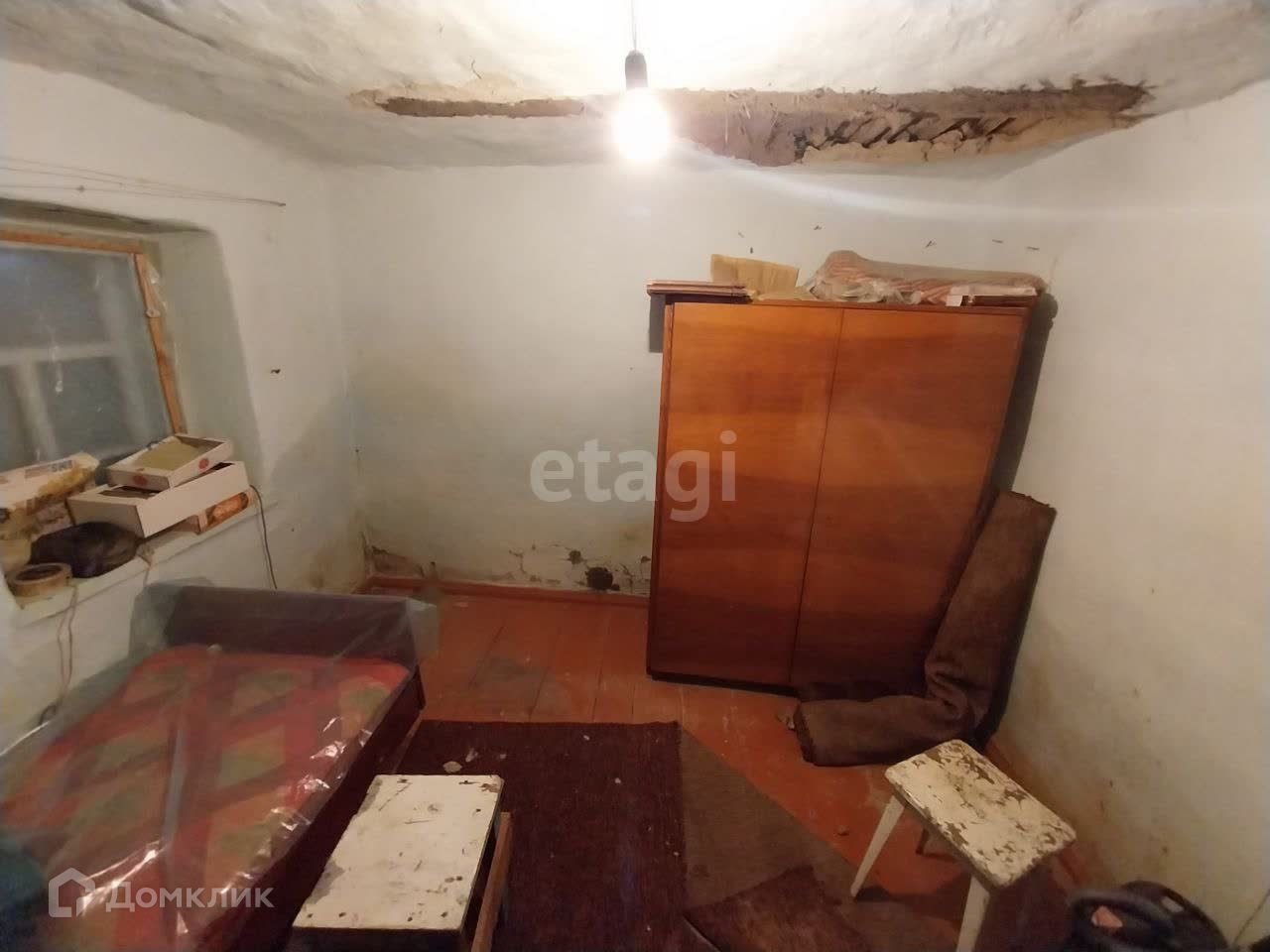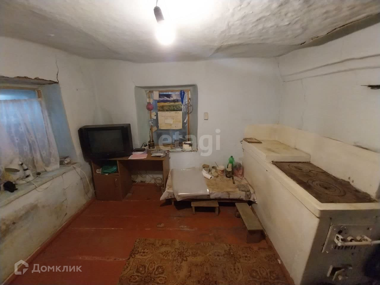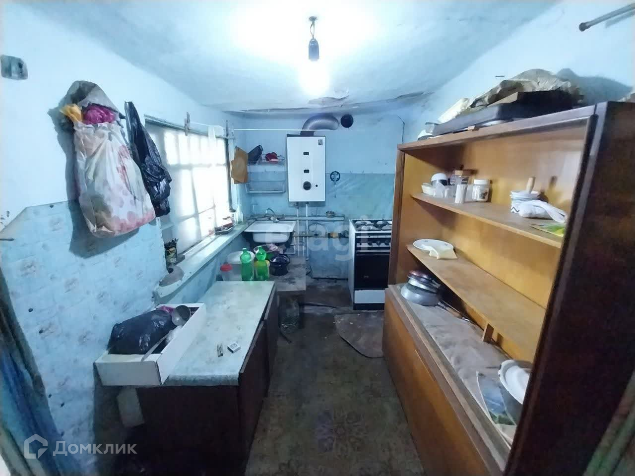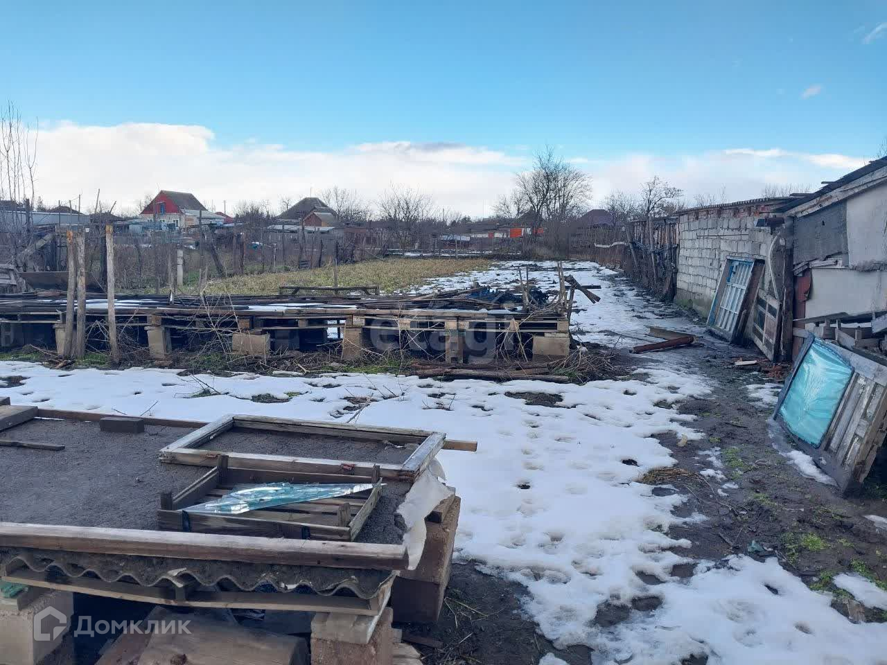 На участке расположен старый саманный дом, в нем две смежные комнаты, небольшая кухня и ванная комната. Туалет на улице.
