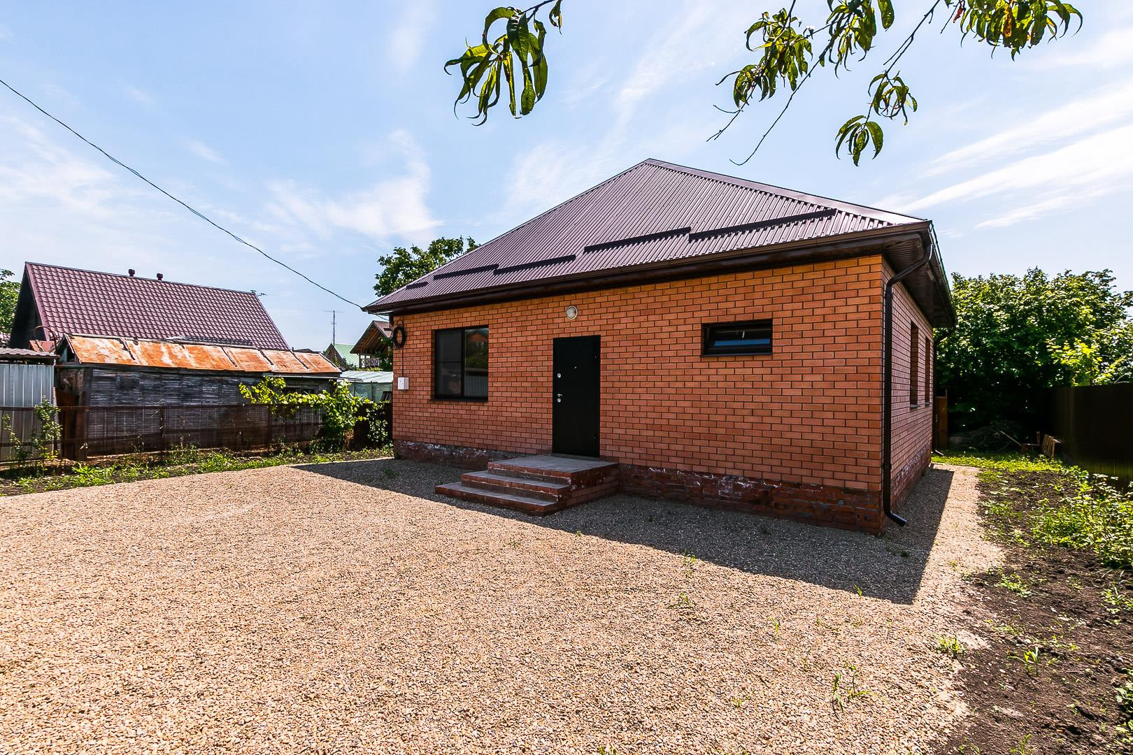 Удобная планировка, 3 изолированные спальни, кухня и просторный санузел. Во всех комнатах установлен натяжной потолок, санузел полностью в плитке, керамогранит в прихожей и на кухне. Участок ровной формы 6 сот. Угловой. На участке есть металлический гараж. Забор из металлопрофиля с откатными воротами. Расположение шикарное, всего 70 метров от центральной улицы. Остановка общественного транспорта и школьного автобуса в шаговой доступности. Рядом продуктовый магазин.