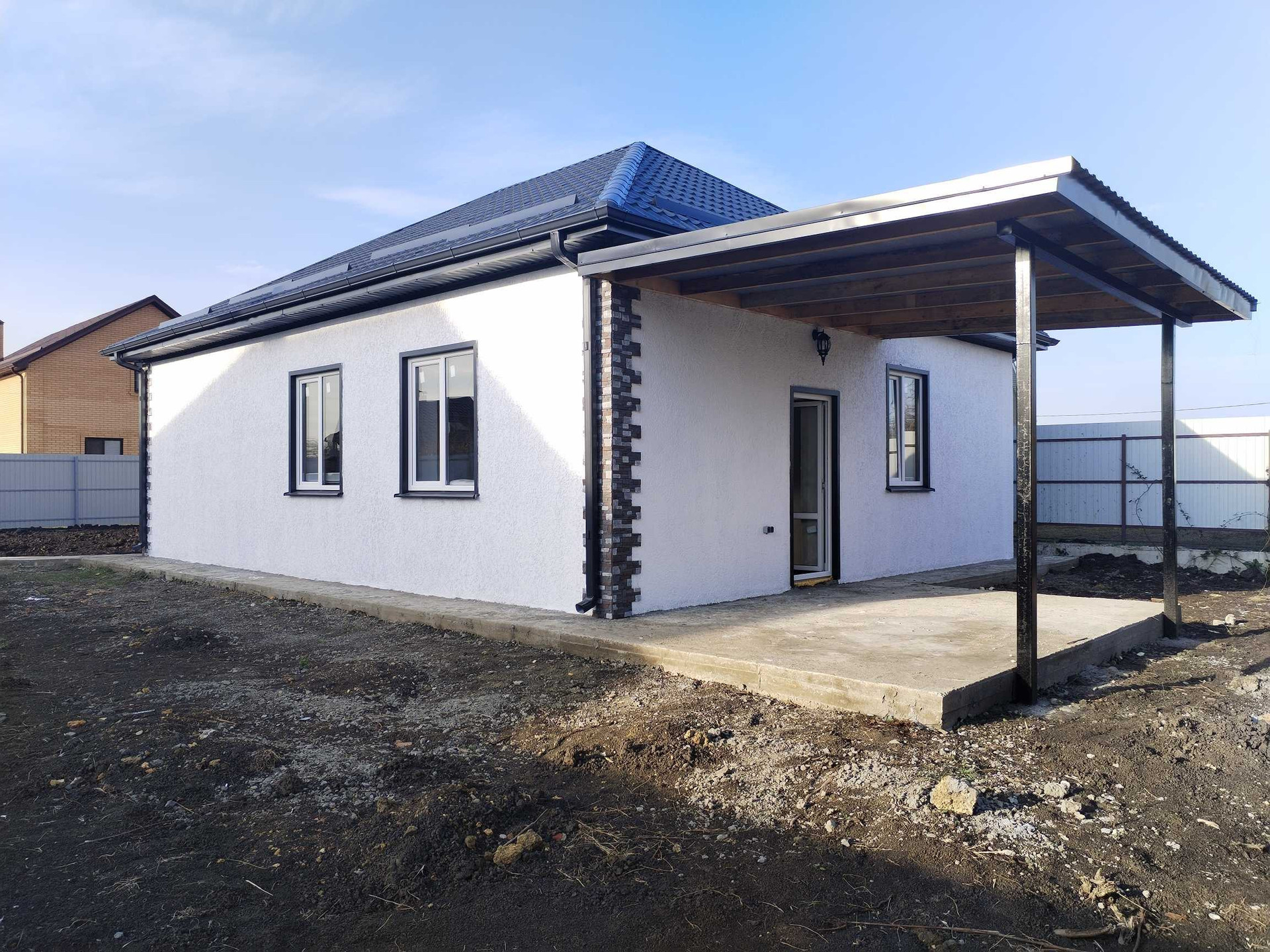 Дом 80 метров 2 комнаты по 14 и 12 м 2 , большая кухня гостиная 27 м 2 , сан-узел 9 м 2 и котельная кладовая 6 м 2 . Дом в предчистовой отделке, сделана проводка , отопление , теплые полы!