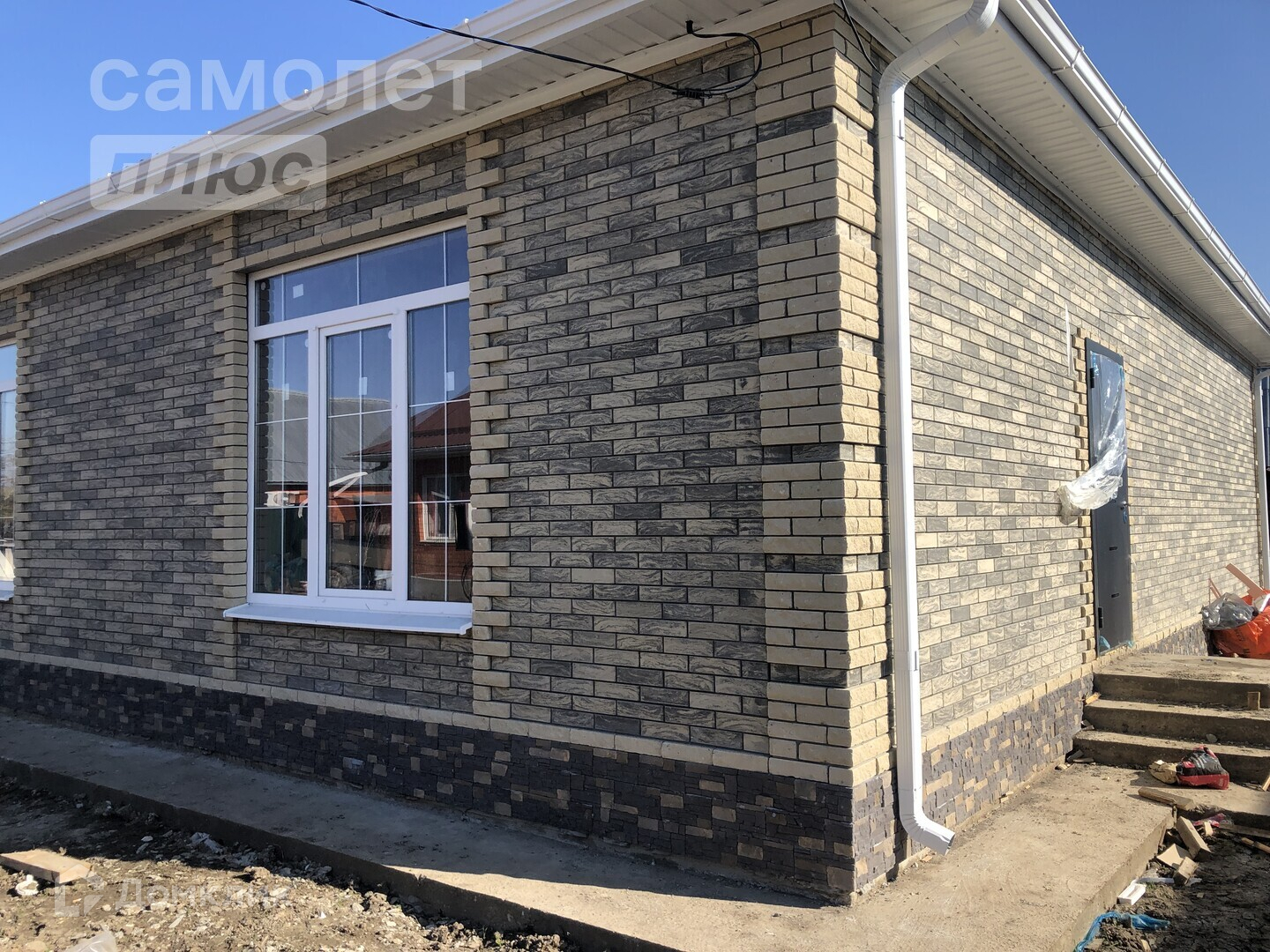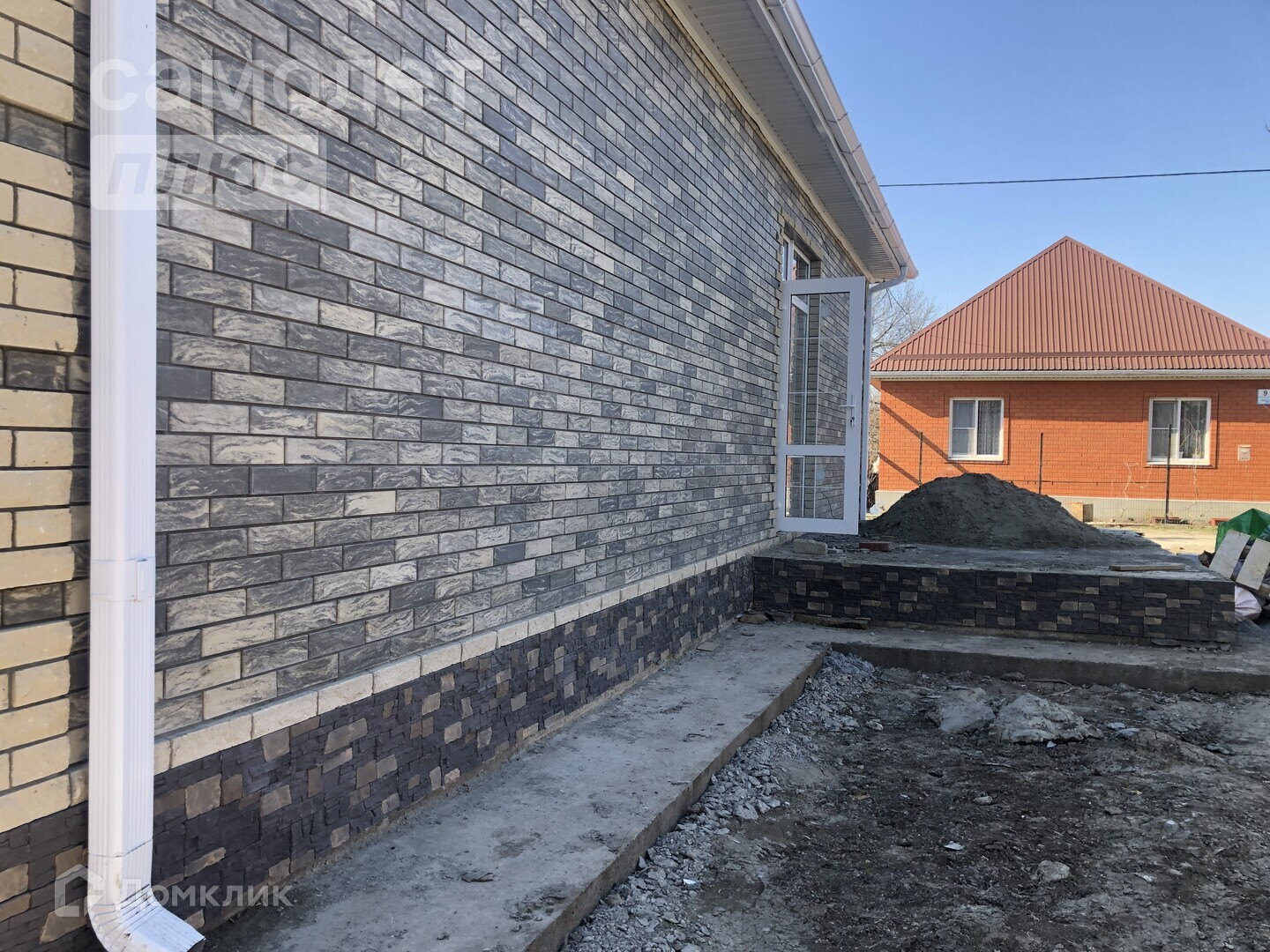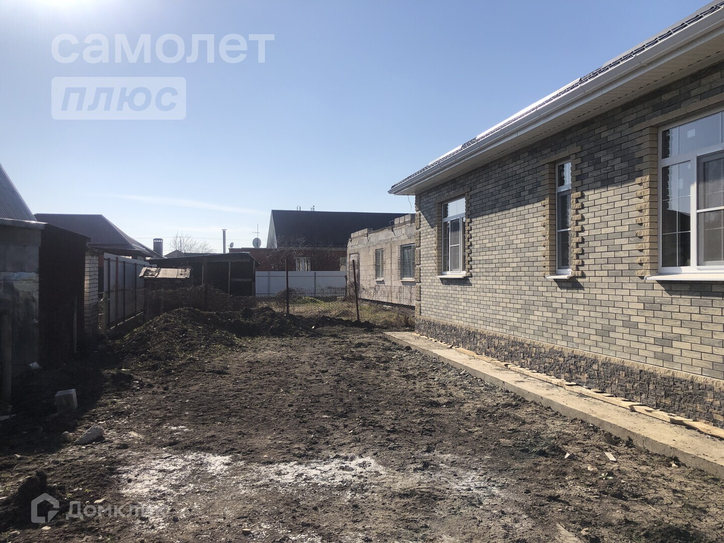 На территории засыпан чернозем, отмостка вокруг дома, заливка парковки под 2 автомобиля.
