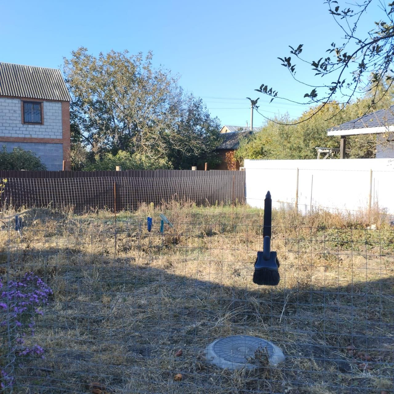 Хороший, квадратный участок 6 соток, дом огорожен по всему периметру высоким забором, двор забетонирован.