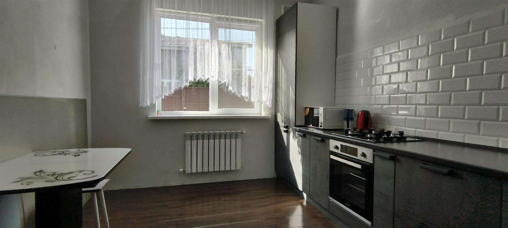 В доме 2 спальные комнаты, в одной из комнат выход на террасу и задний двор. В доме так же отдельная комната-гардеробная. Великолепное местоположение дома, в 5 минутах от остановки. В доме остается все, что видите на фото. Установлен газгольдер, на приготовление пищи, отопление и горячую воду. Готовы к просмотру ? Звоните прямо сейчас!