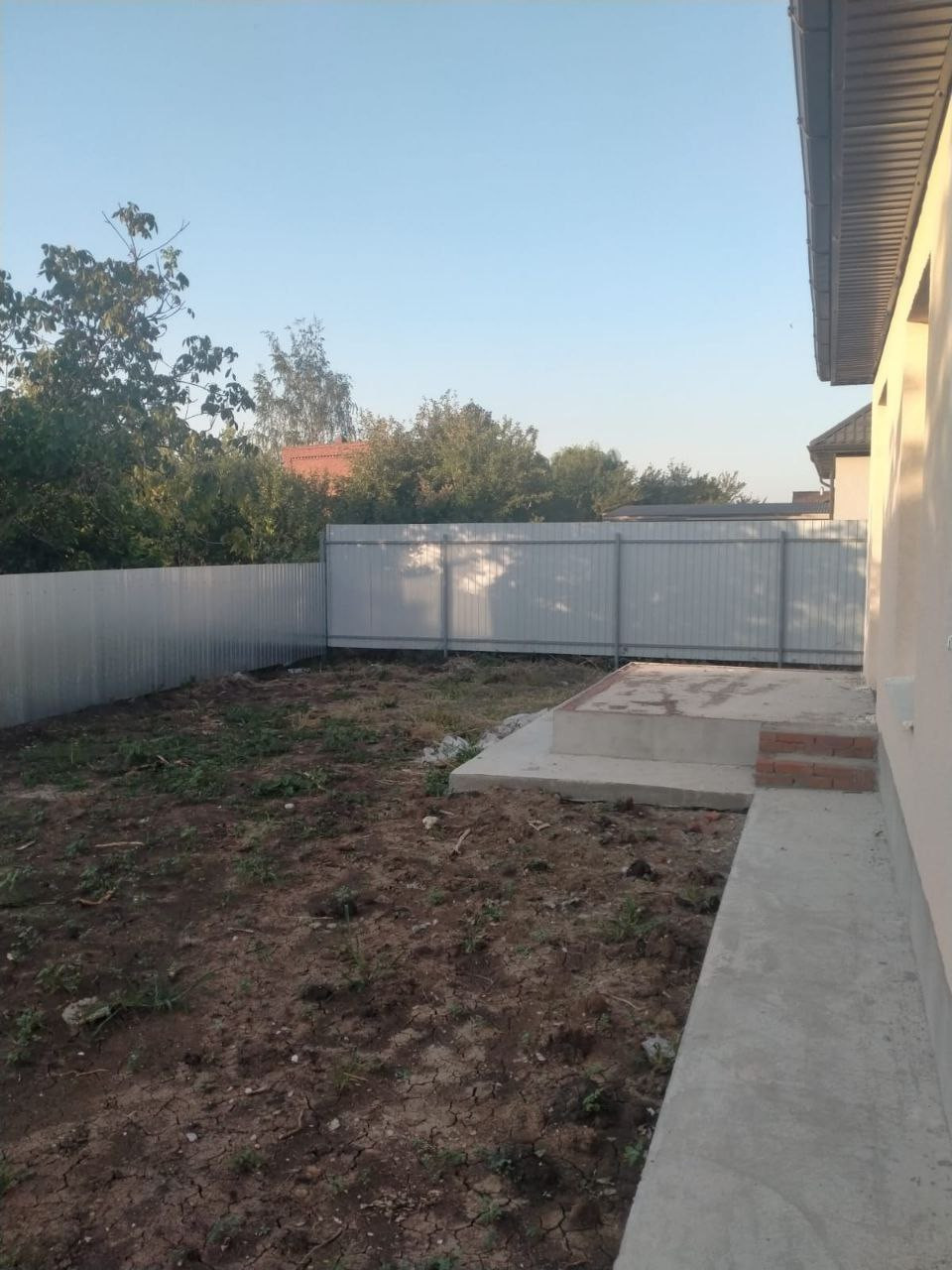 Въезд на 2 машины, откатные ворота. Участок огорожен забором.