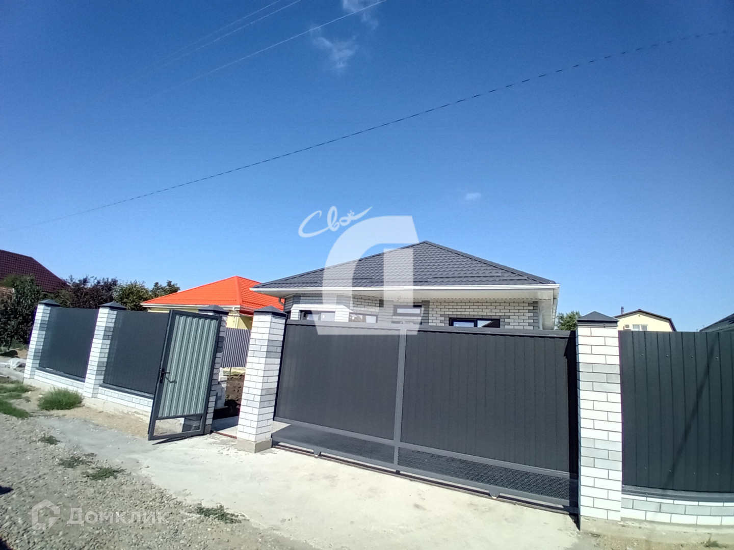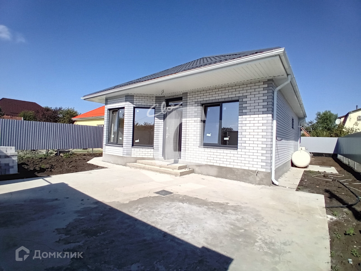 Двор благоустроен: бетонированная площадка под 2 авто, отмостка вокруг дома. подсыпан чернозем. Установлен надежный, красивый по фасаду забор. Откатные широкие ворота. Калитка.