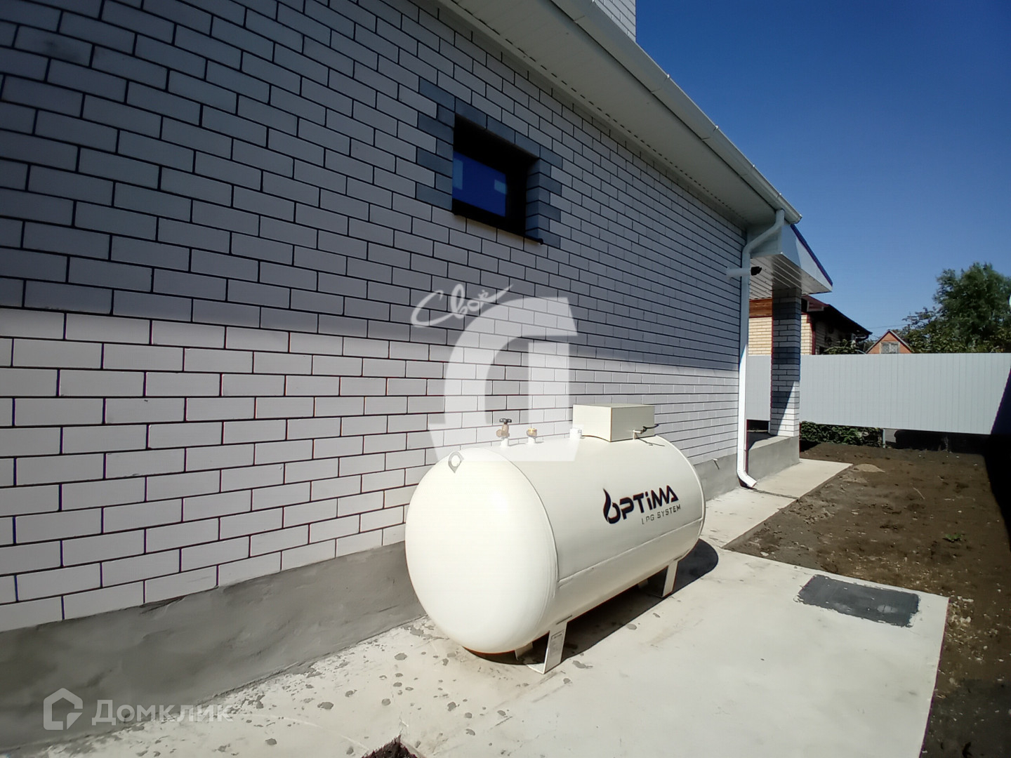 В дом заведены все коммуникации: газ – газгольдер на 1400 литров (установлен на аккуратной железобетонной площадке) , вода-готовая скважина, электроэнергия, вместительный септик. Уже установлены все счетчики , газовый котел. На переднем и заднем фасаде дома -выводы воды для полива с аккуратными кранами.
