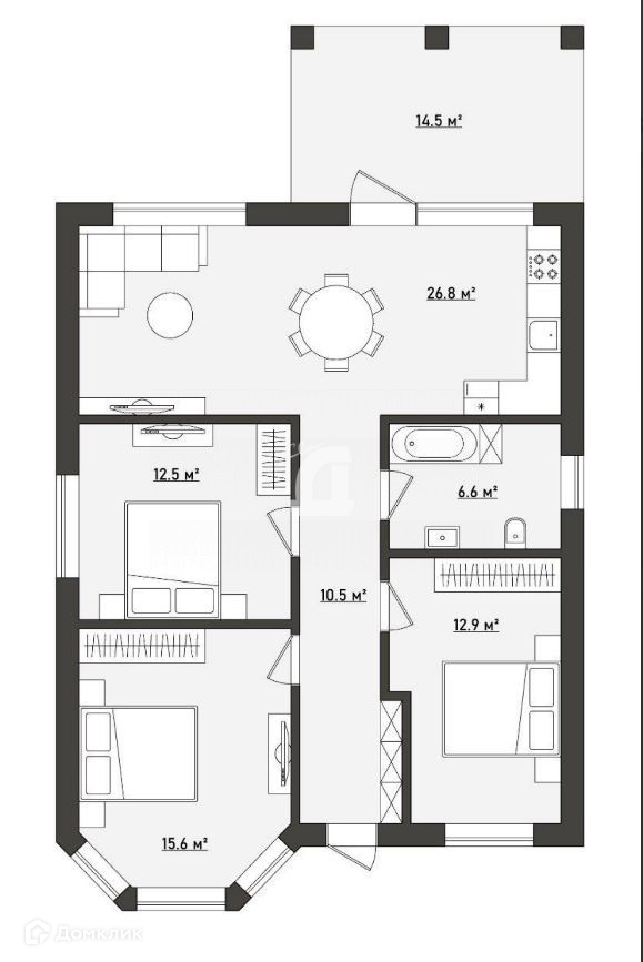 Отличная планировка: Большая кухня-гостиная с панорамным видом и выходом на просторную веранду. 3 вместительные спальные комнаты. Большой санузел. Широкий коридор.