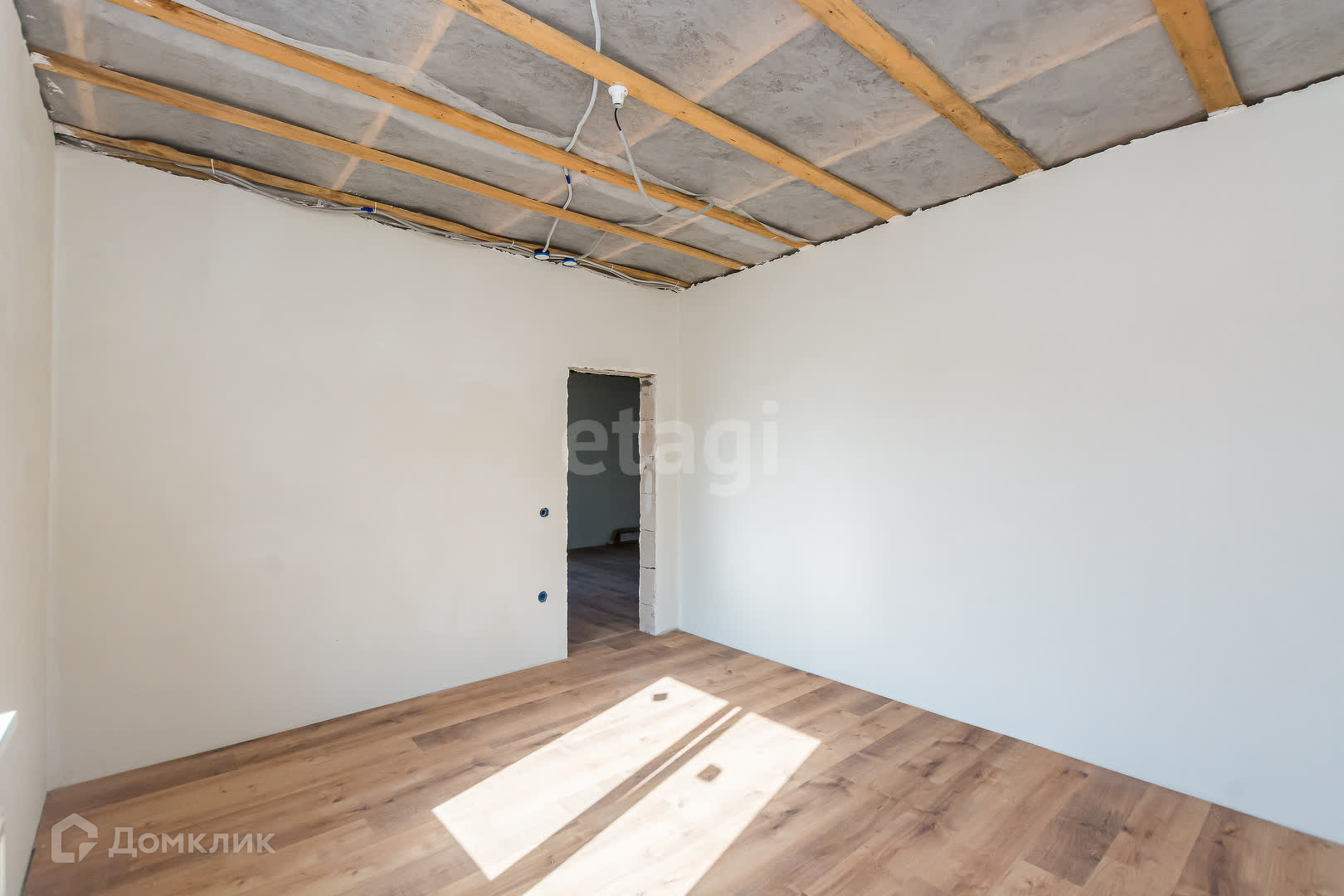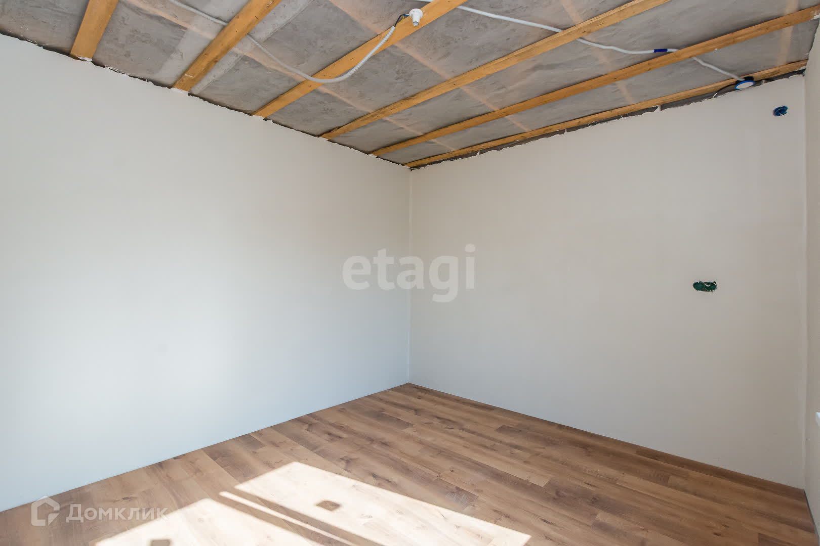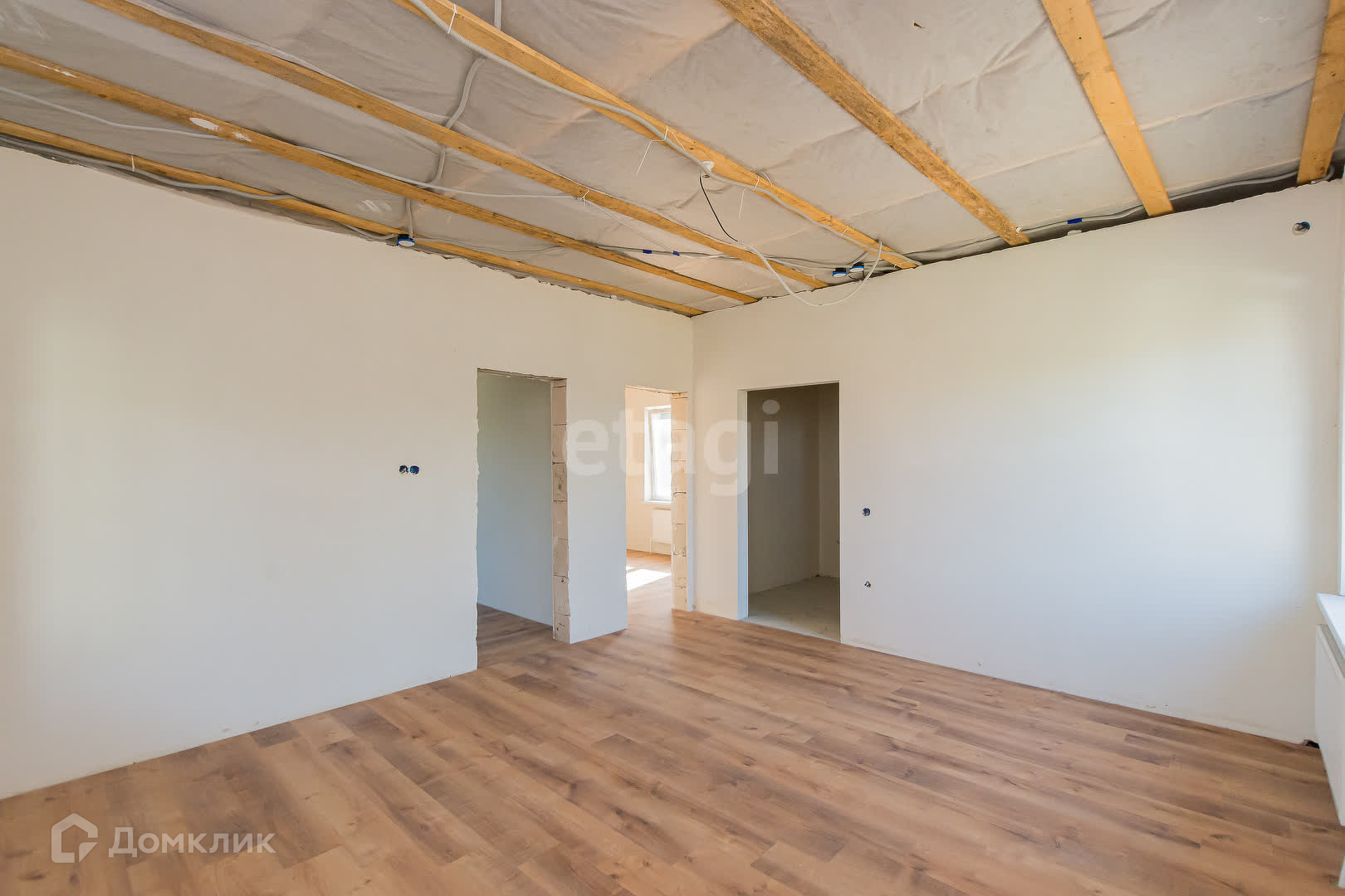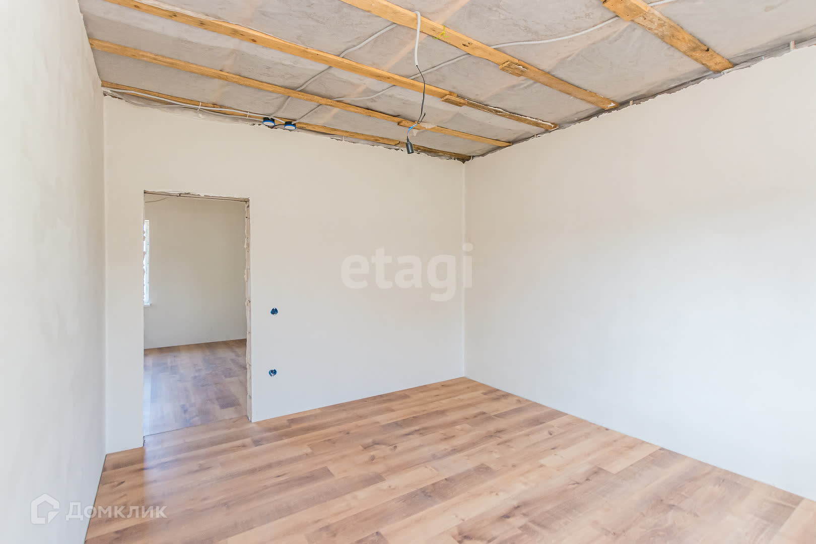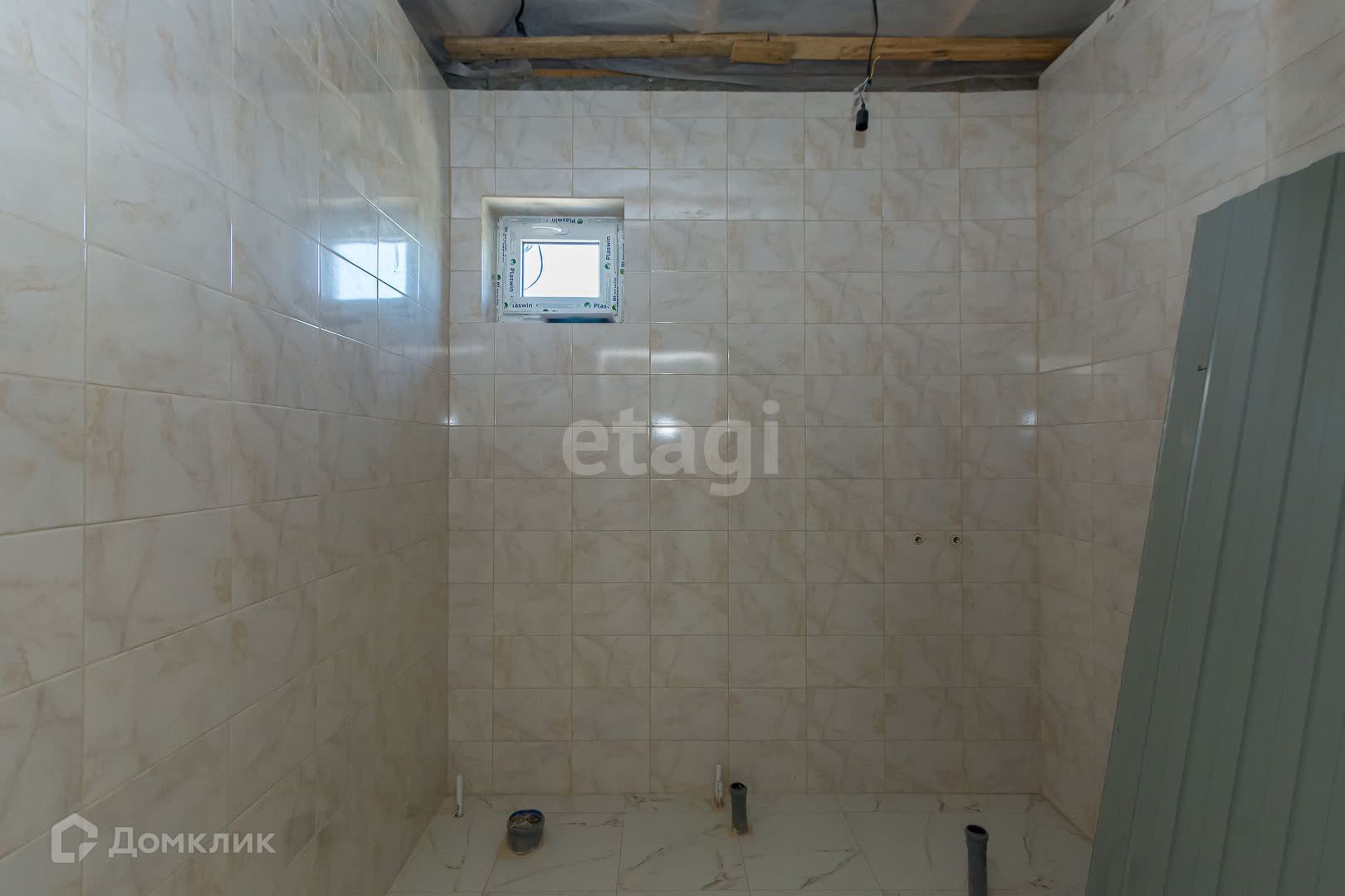 Электрика выведена, плитка выложена, на полу лежит ламинат.