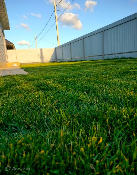 На участке молодые деревья, спортивный газон.