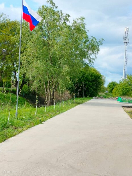 Участок угловой, бетонная дорога до калитки, во дворе также залита бетонная площадка. Уличное освещение по всей улице.