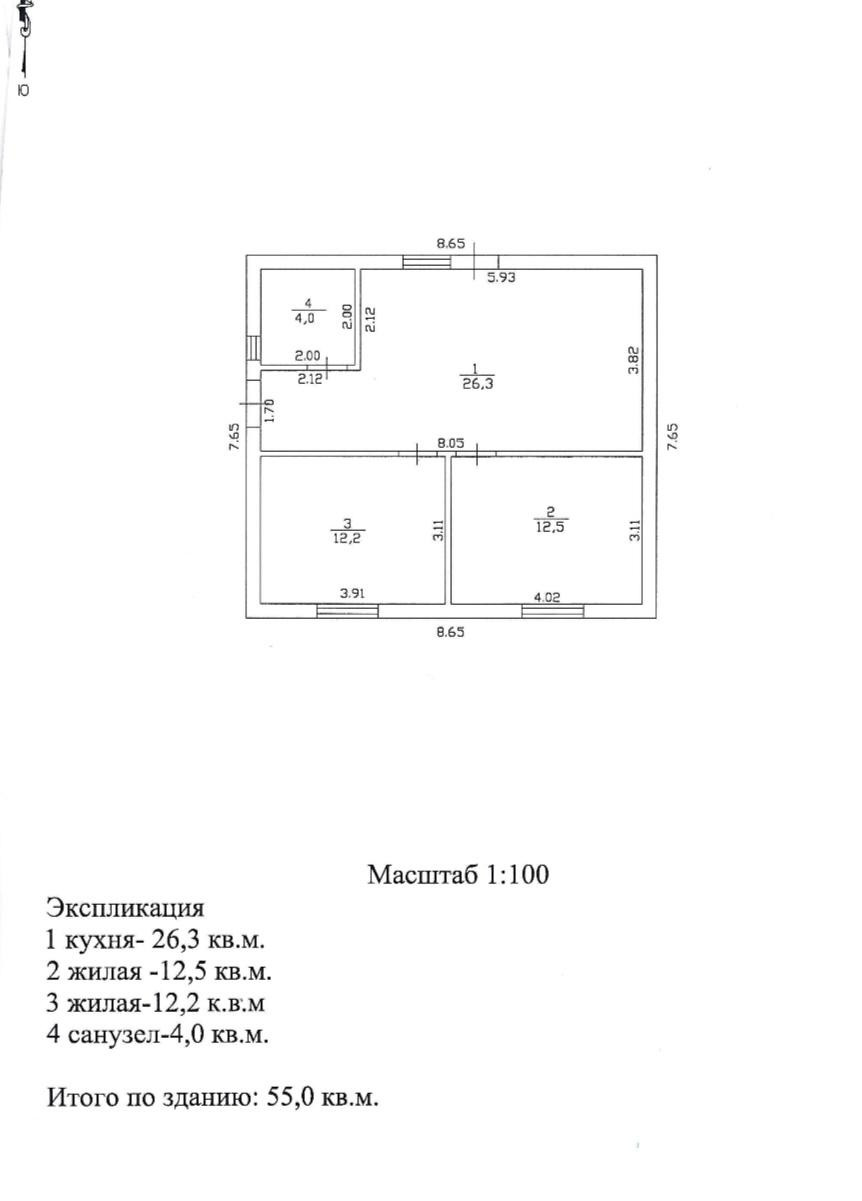 Общая площадь 55 м2