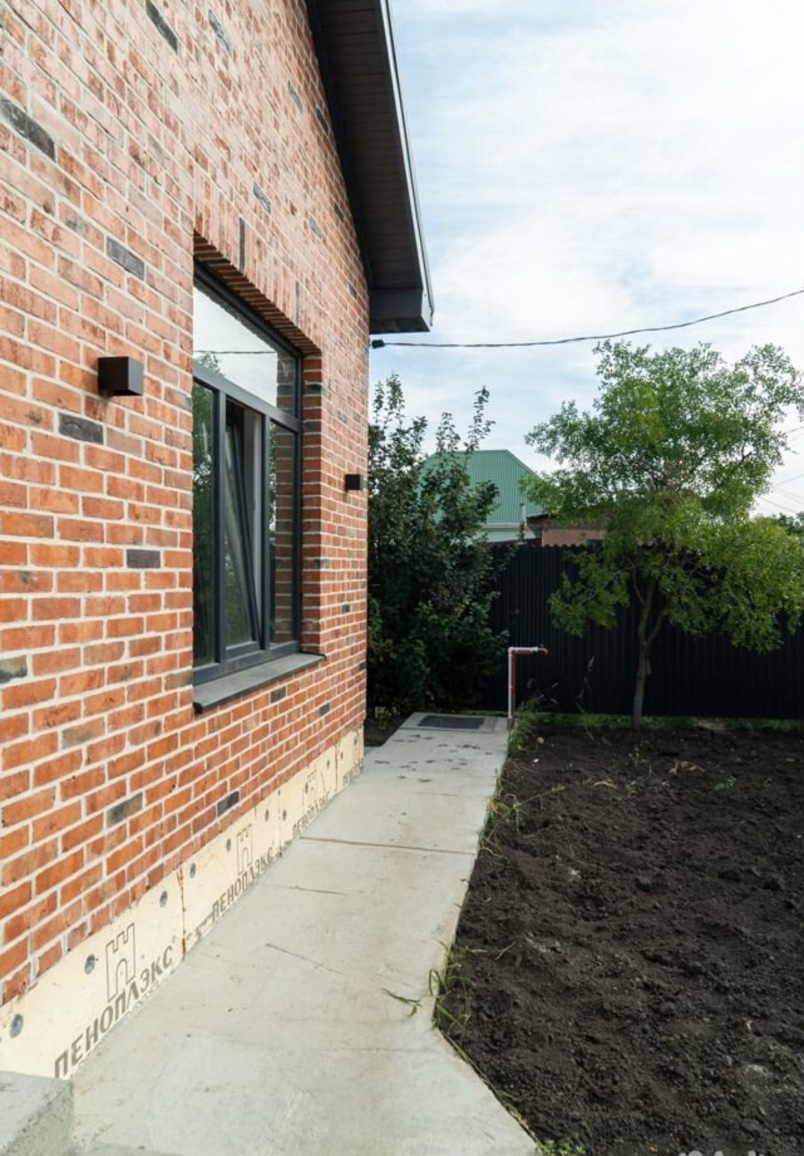 Во дворе залита площадка на две машины и отмостка, откатные ворота шириной 5 метров.