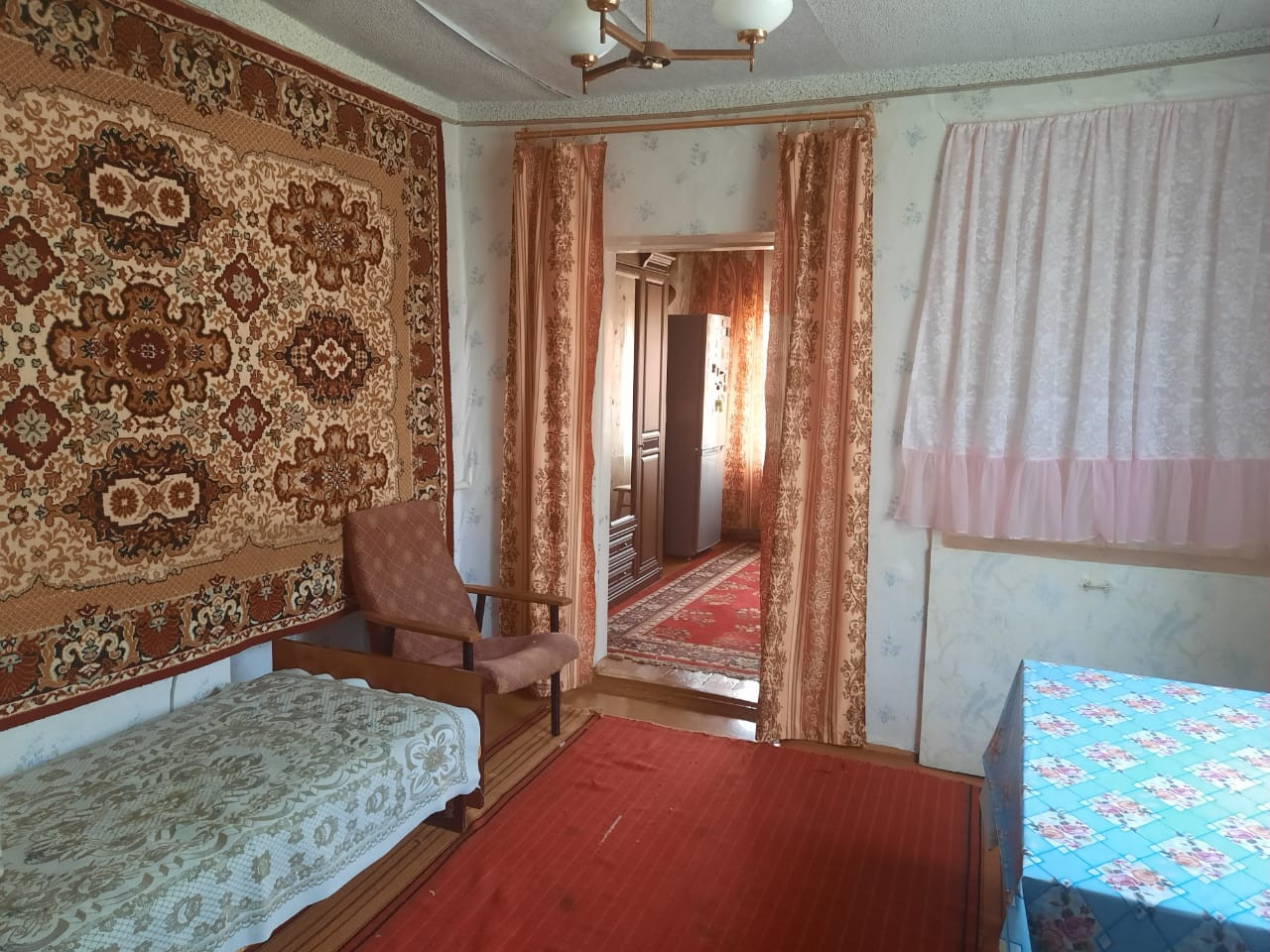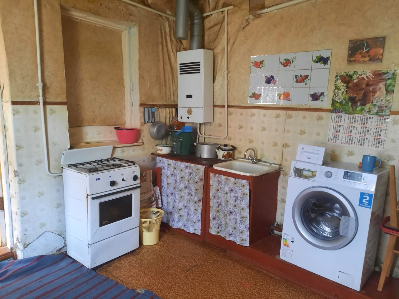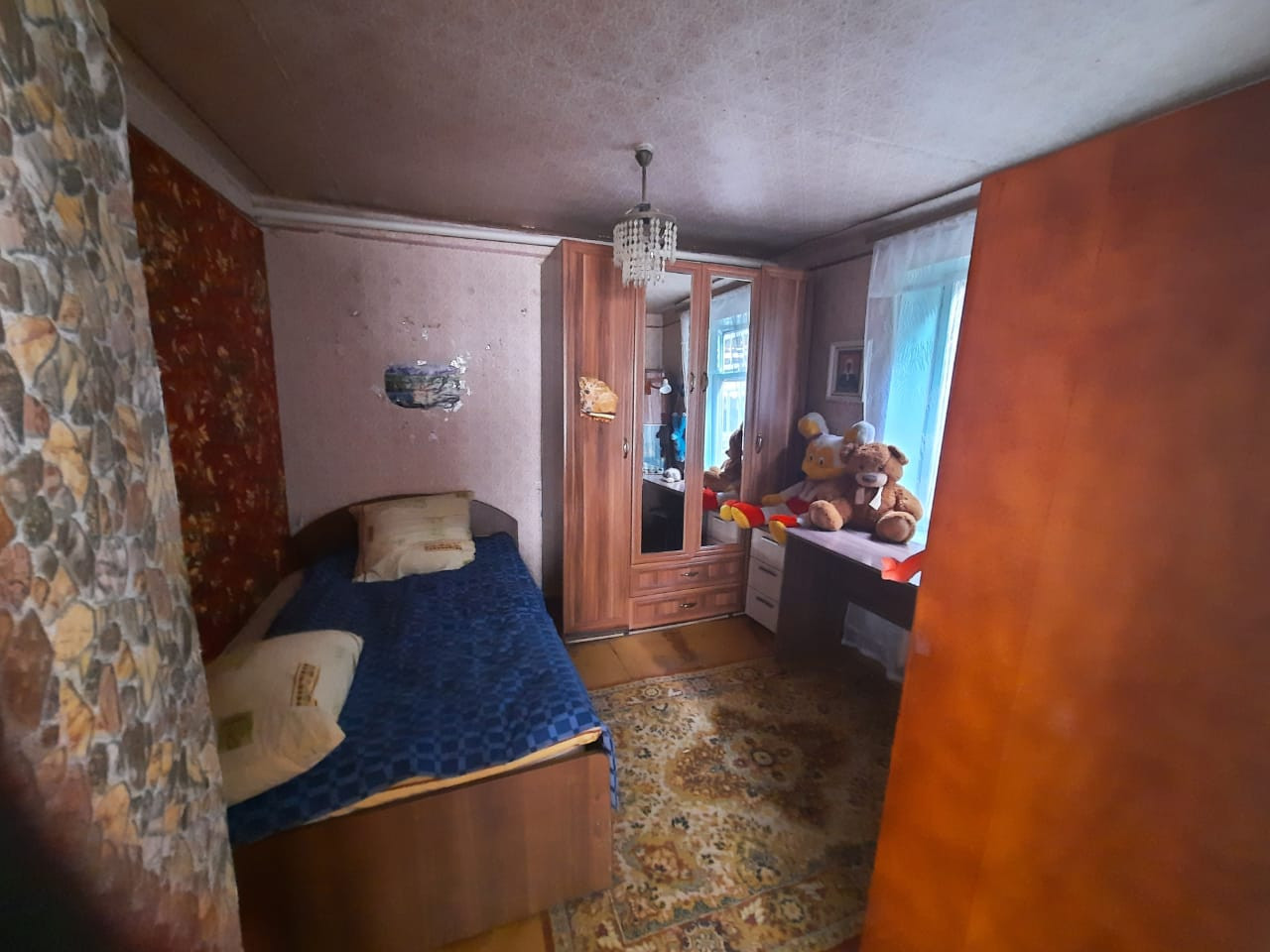 На стенах- обои. На полу- фанера. Канализация. Комнаты проходные. Котел - АГВ. Жилая площадь - 54,3. Земельный участок в постоянном бессрочном пользовании. Форма расчета -наличные.