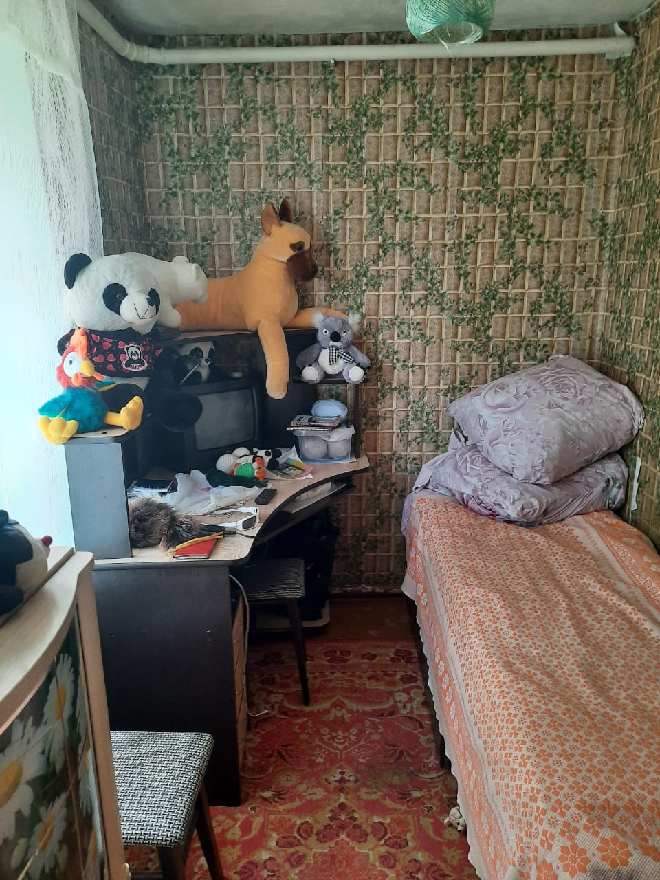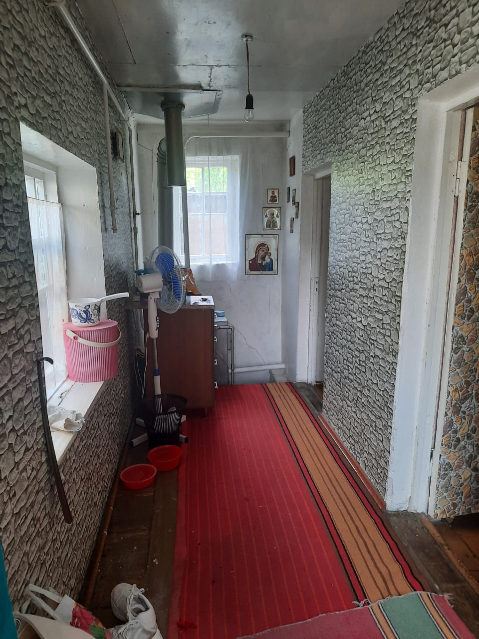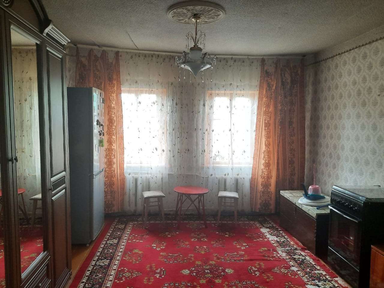 На стенах- обои. На полу- фанера. Канализация. Комнаты проходные. Котел - АГВ. Жилая площадь - 54,3. Земельный участок в постоянном бессрочном пользовании. Форма расчета -наличные.
