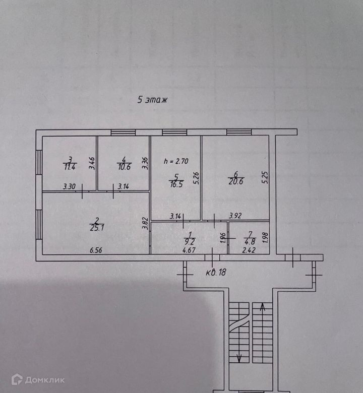 Высота потолков 2.8 м