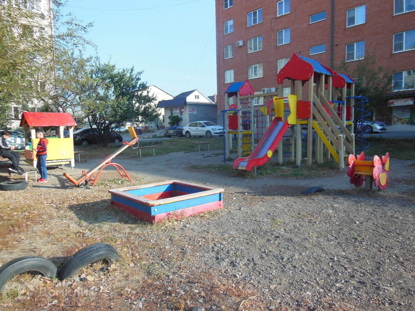 Во дворе большая детская площадка.
