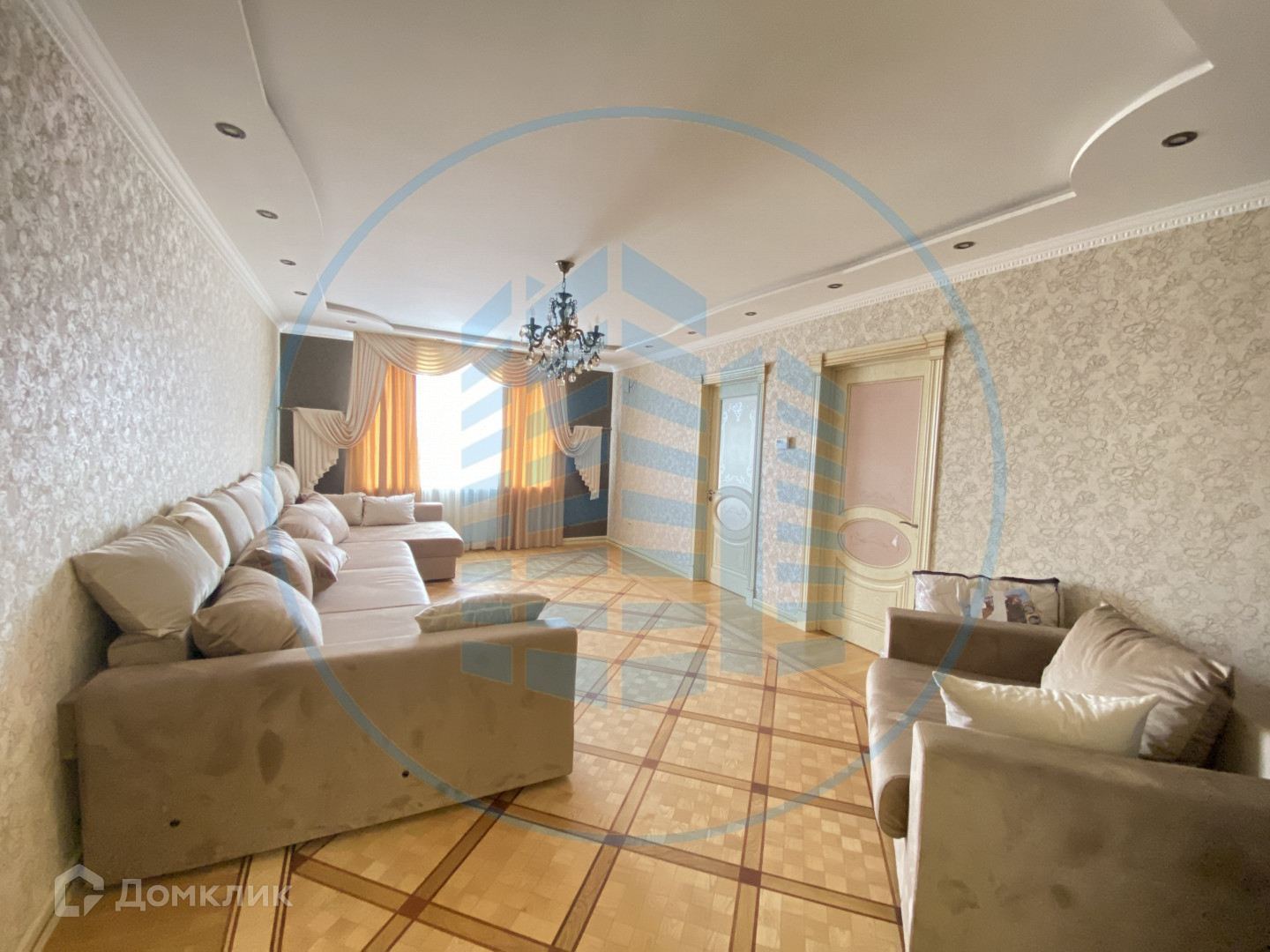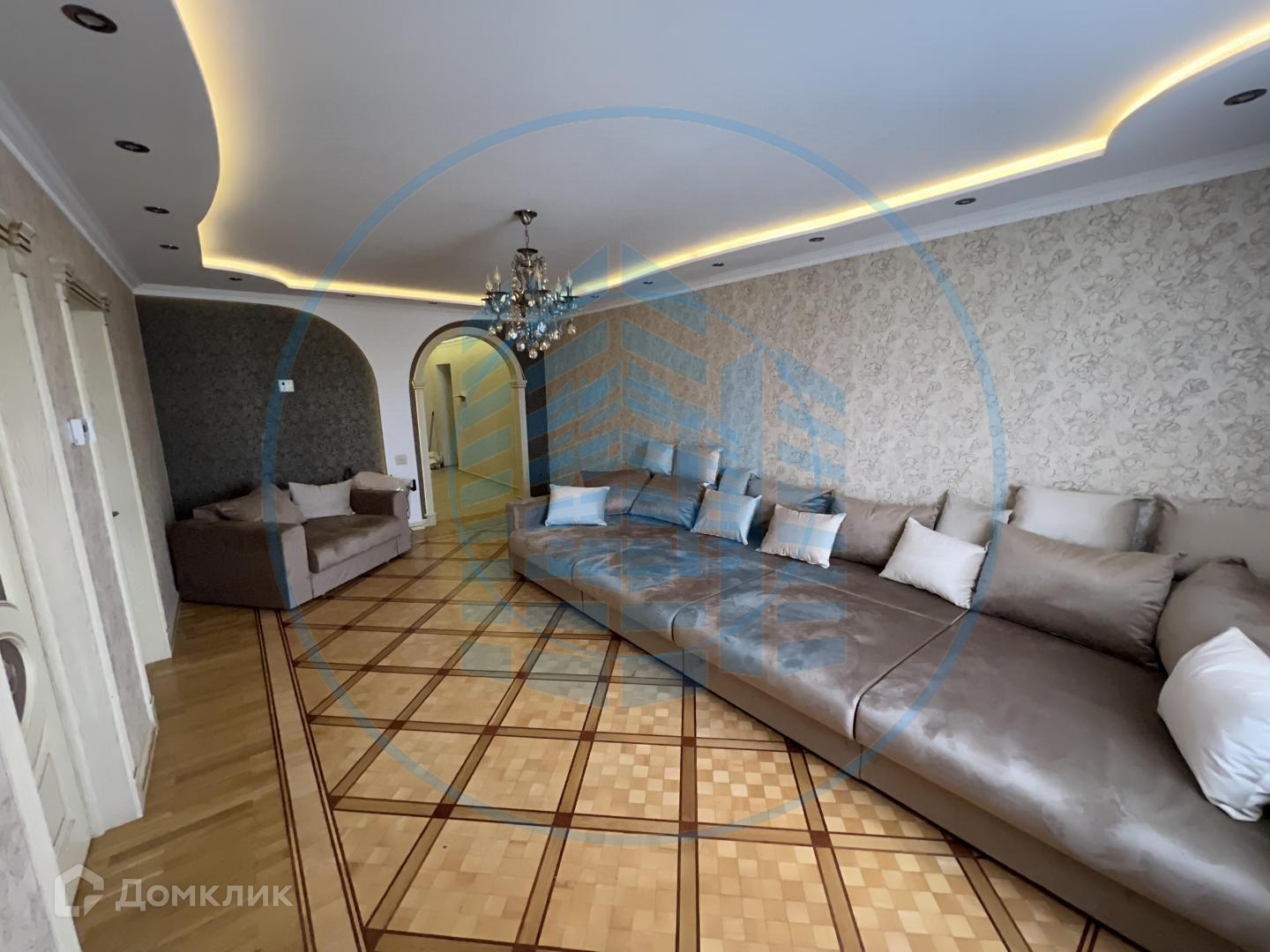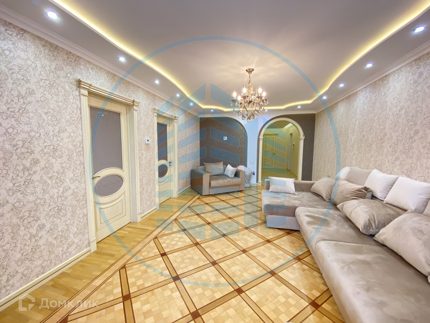 — В квартире выполнен ремонт в классическом стиле и светлых тонах: Двухуровневые гипсокартонные потолки с потолочными светильниками, паркетный пол в комнатах;