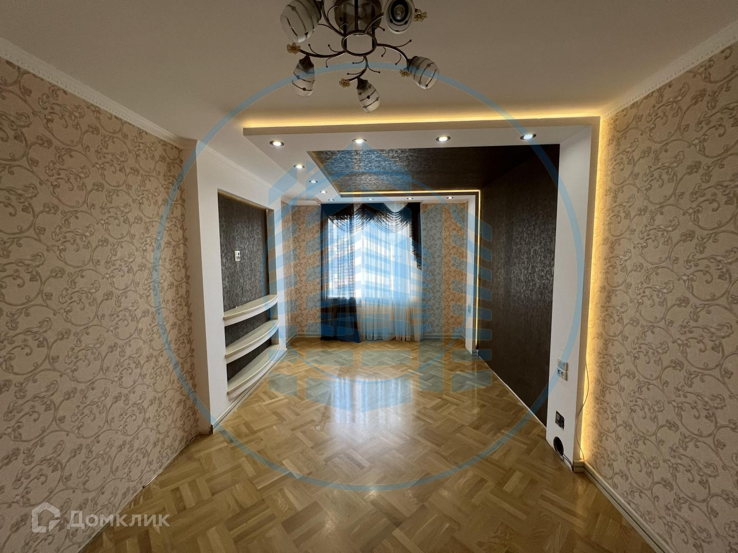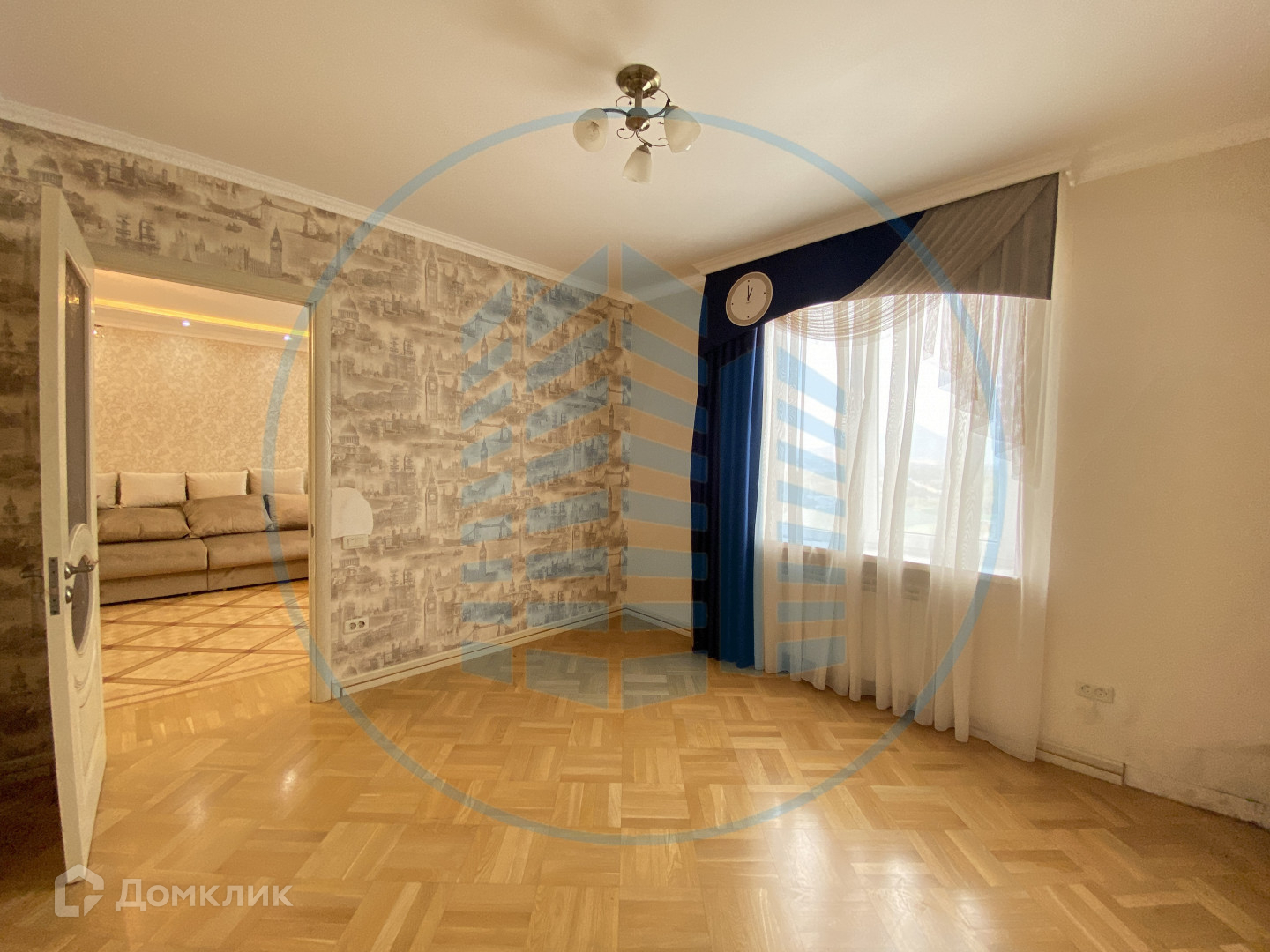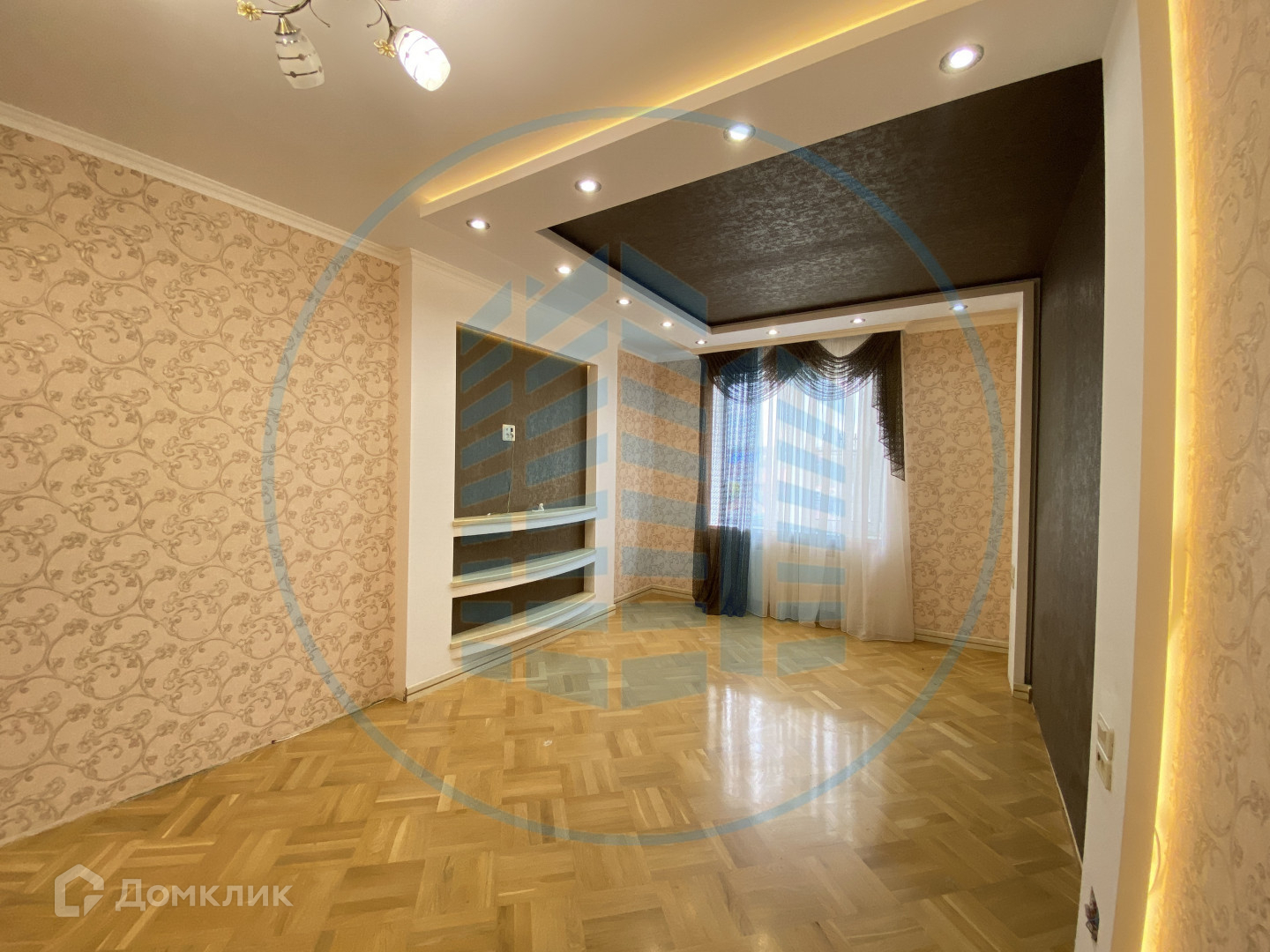 — В квартире выполнен ремонт в классическом стиле и светлых тонах: Двухуровневые гипсокартонные потолки с потолочными светильниками, паркетный пол в комнатах;