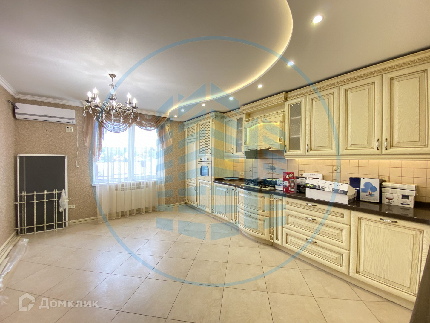 Остается все что вы видите на фотографиях: а именно кухонный гарнитур из массива ясеня с доводчиками фирмы Blum и столешницей из искусственного камня , варочная панель, духовой шкаф, вытяжка, кондиционер.