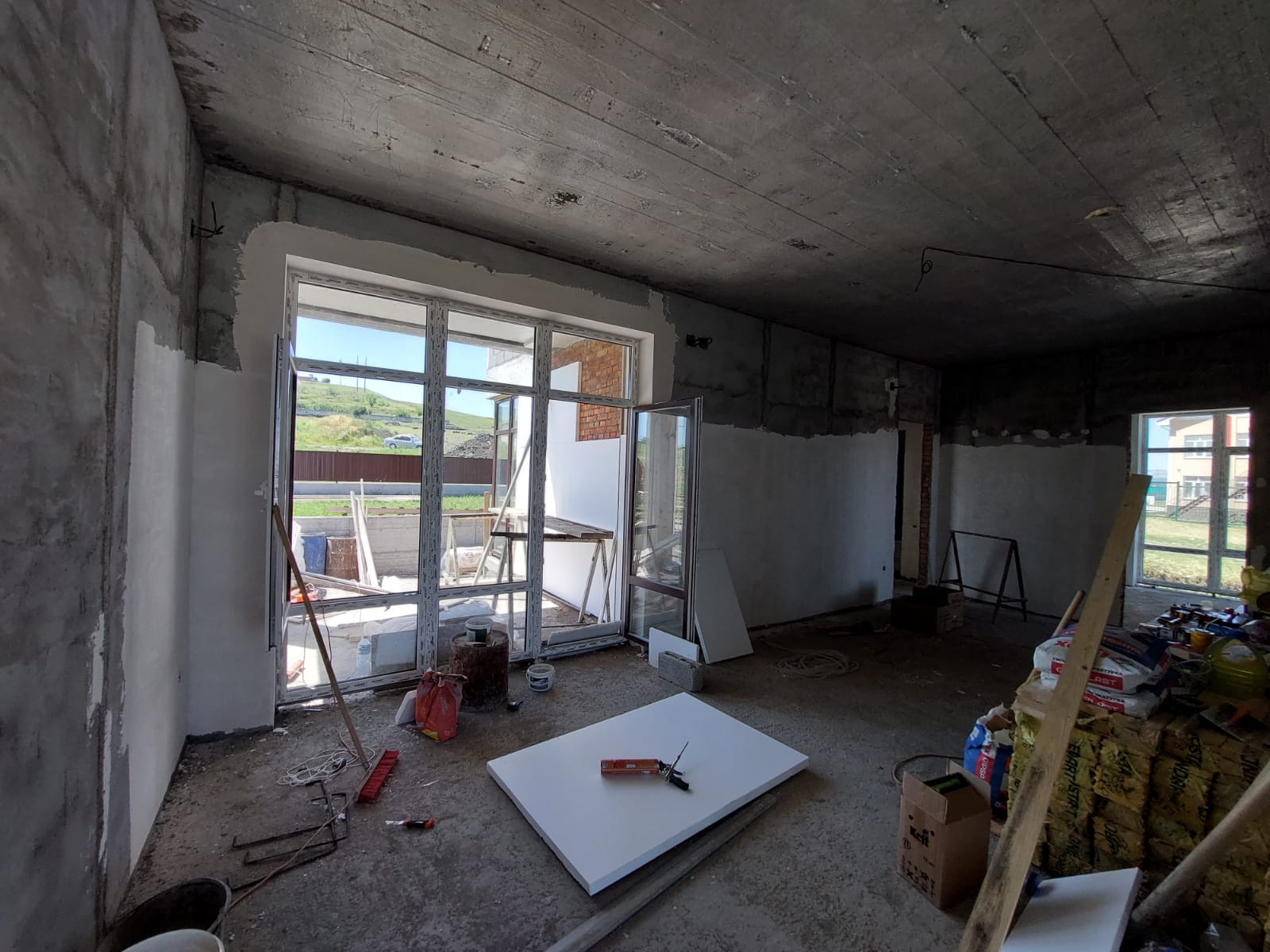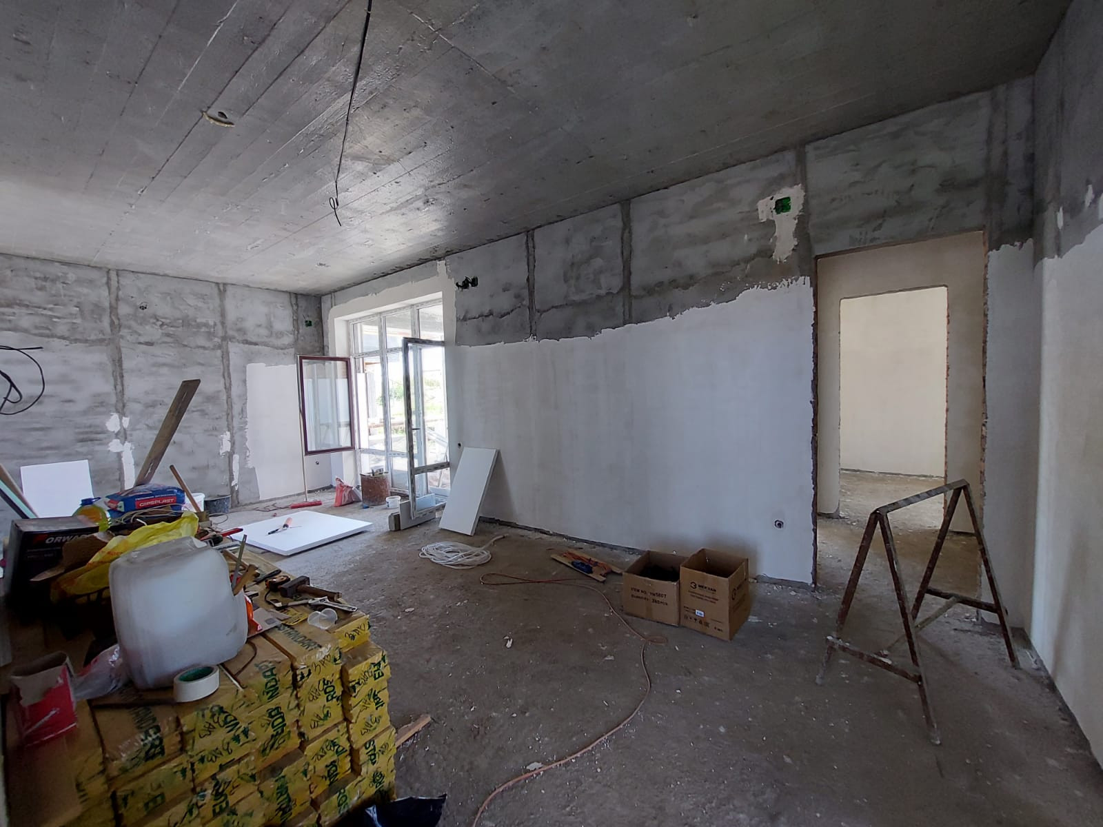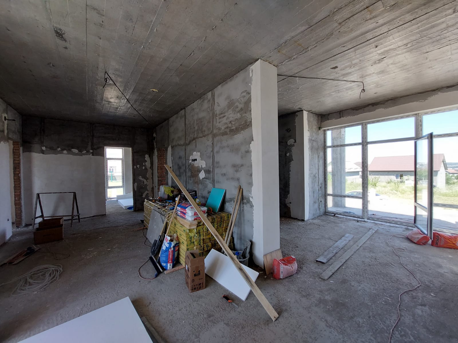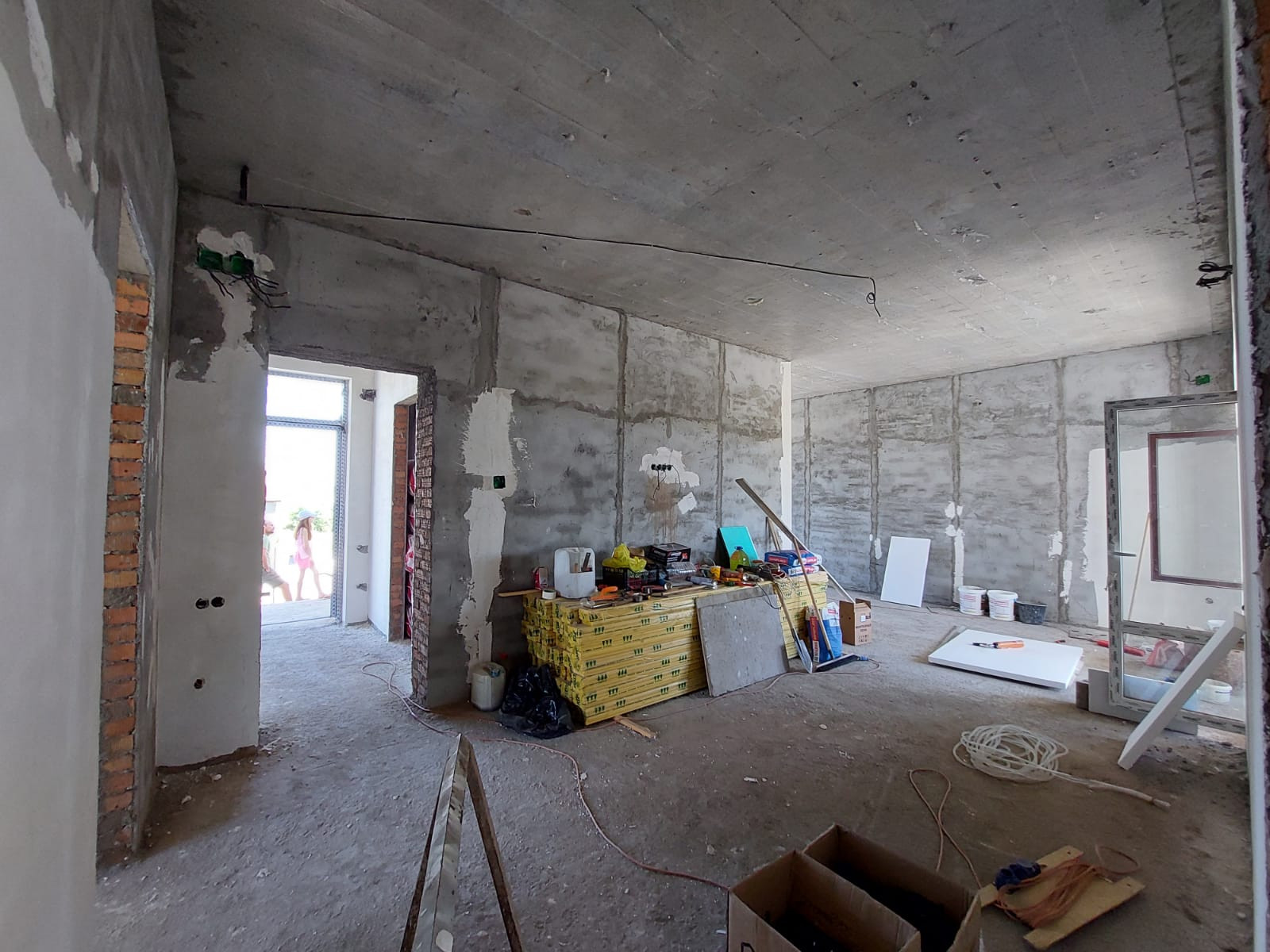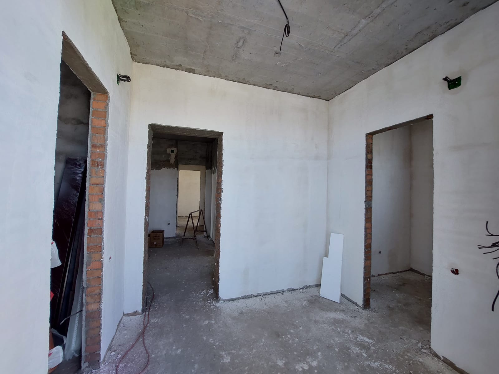 -Чистовая стяжка,шпатлевание стен под обои! -Разводка электричества,отопления и тёплых полов! Канализация центральная.