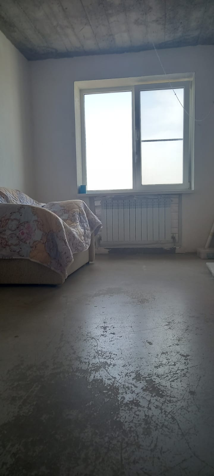 Квартира с незавершенным ремонтом: полы с подогревом в ванной, кухне, прихожей; плитка на полу ванной и кухне; наливные полы подготовлены под ламинат, потолки частично гипсокартон, балкон застеклен утеплен с ремонтом.