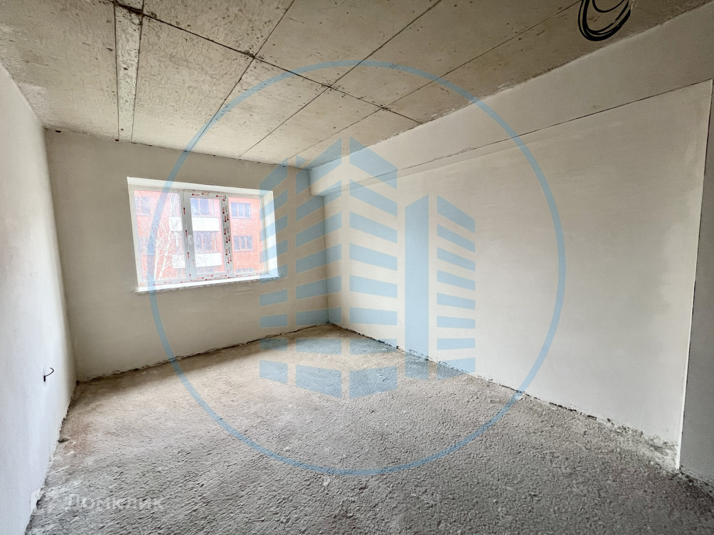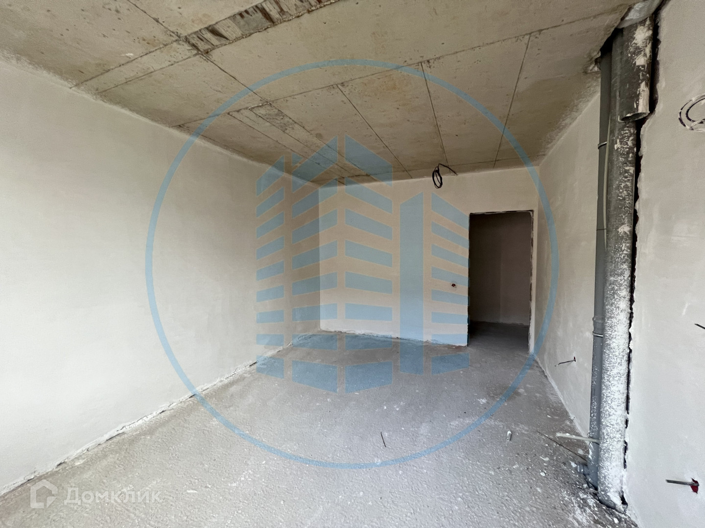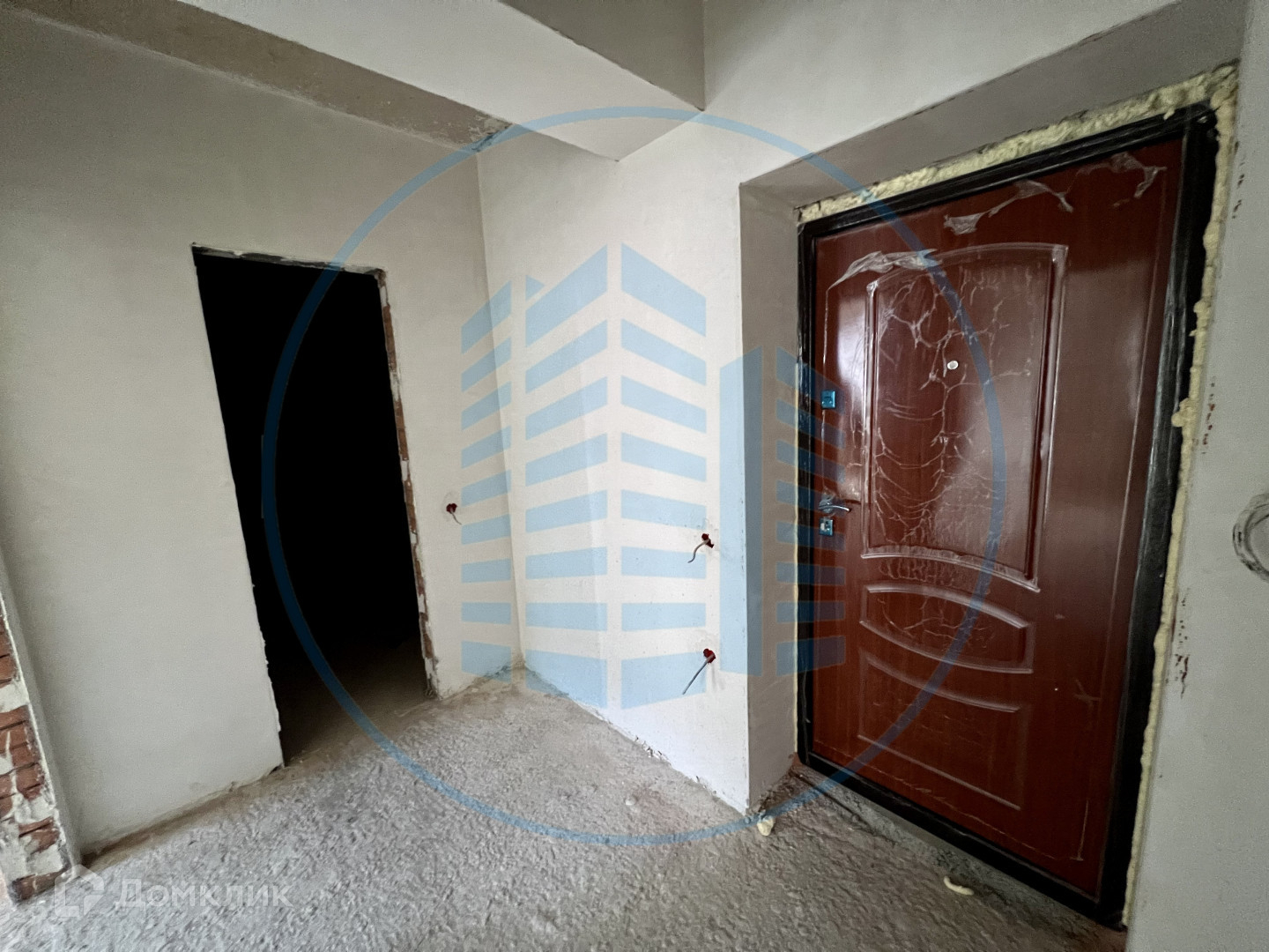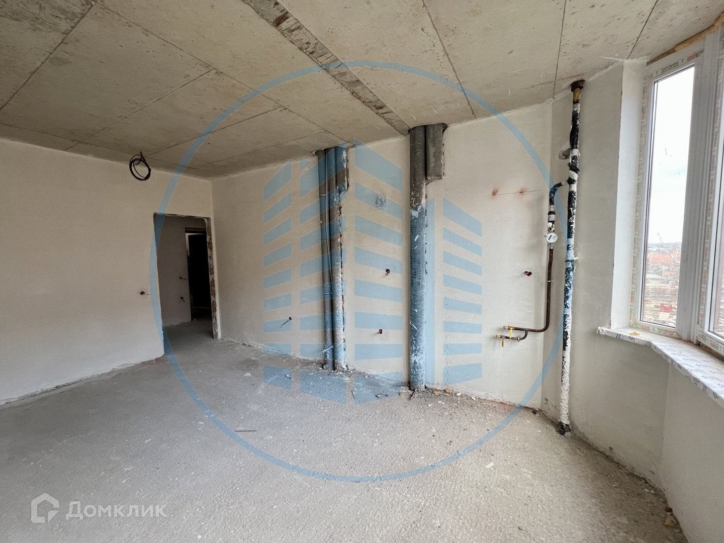 Состояние после строителей: гипсовая штукатурка стен, разведена электрика, выводы под сантехнику.