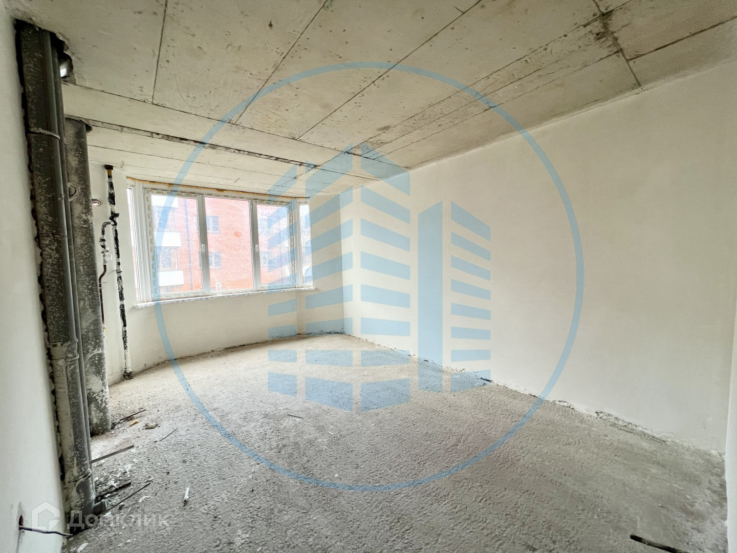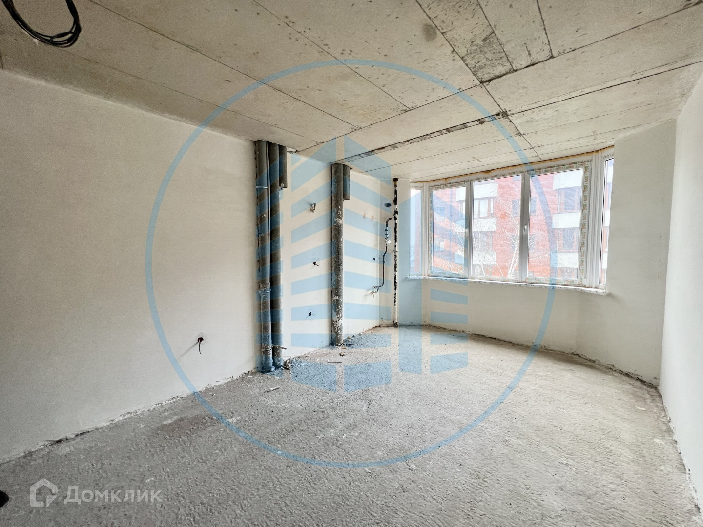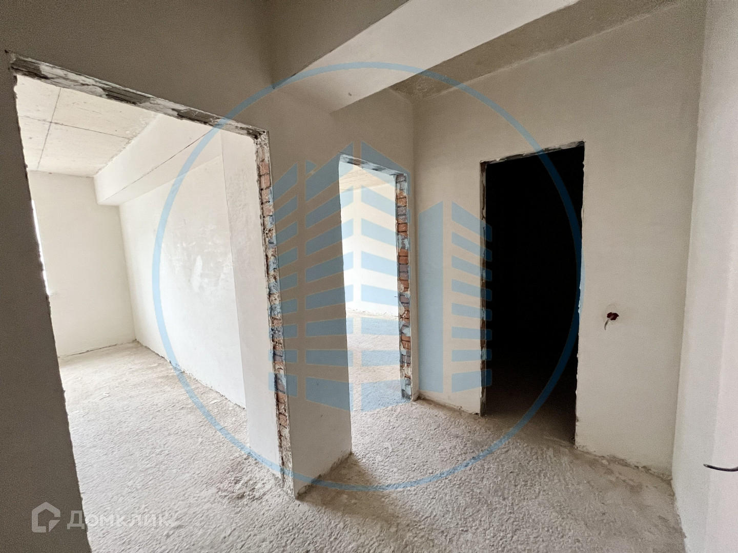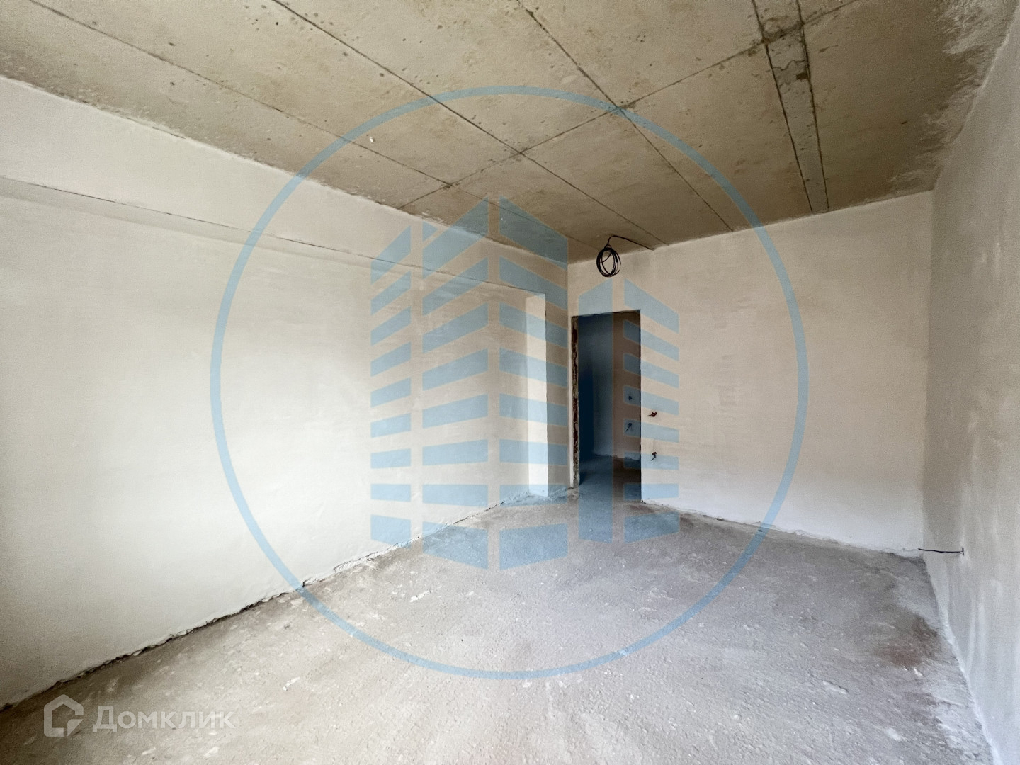 Состояние после строителей: гипсовая штукатурка стен, разведена электрика, выводы под сантехнику.