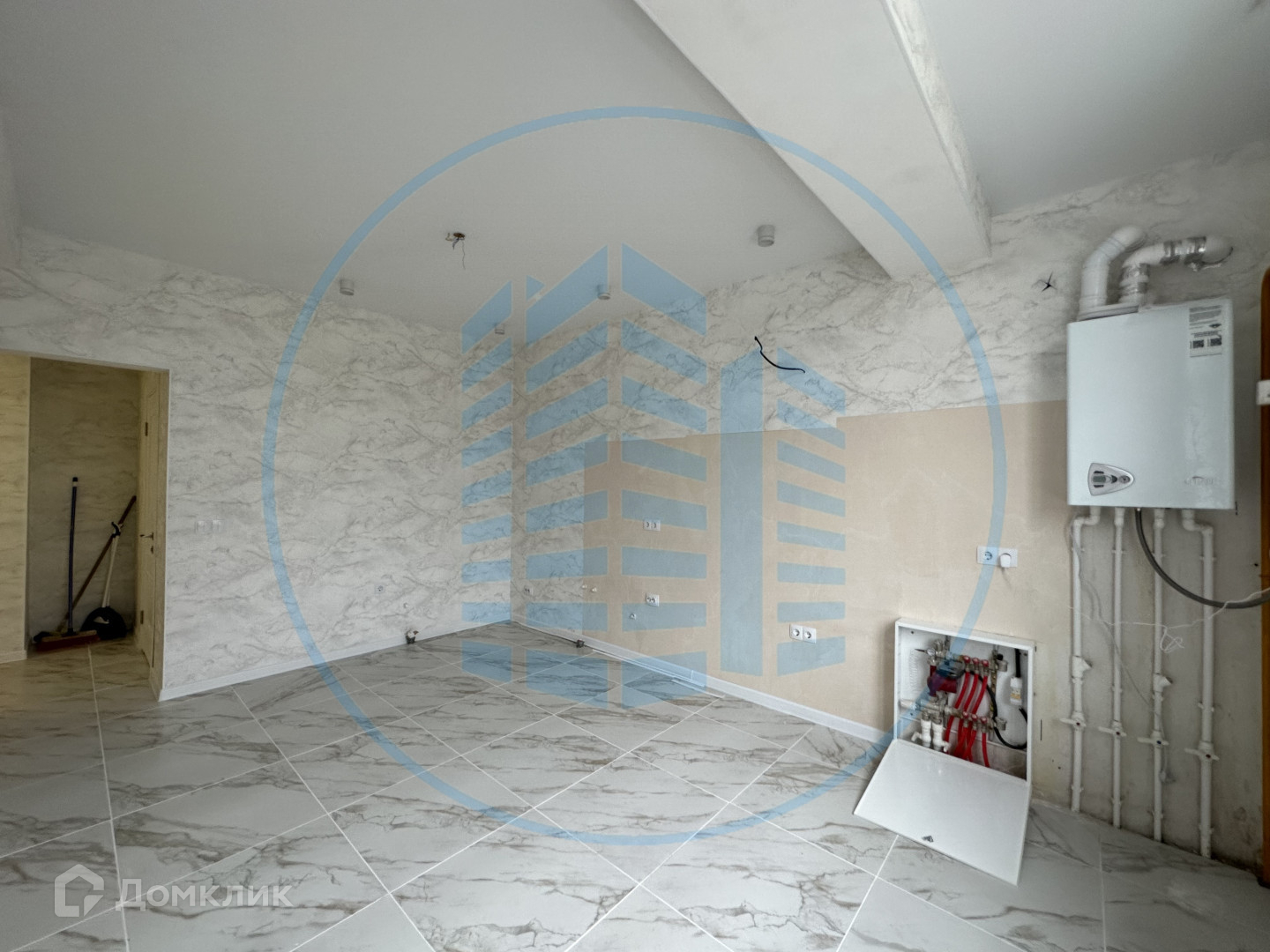 Просторная прихожая с местом под гардероб, кухня-гостиная, спальня.