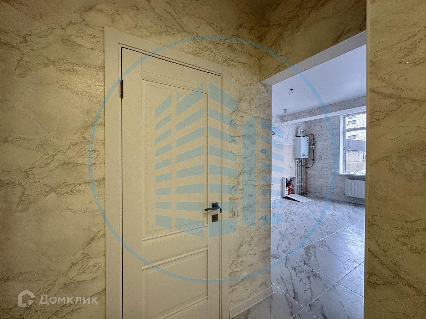 Ремонт в светлых тонах в современном стиле: в прихожей, кухне и сан/узле теплые полы ( покрытие-керамогранит), натяжной потолок с точечными светильниками.
