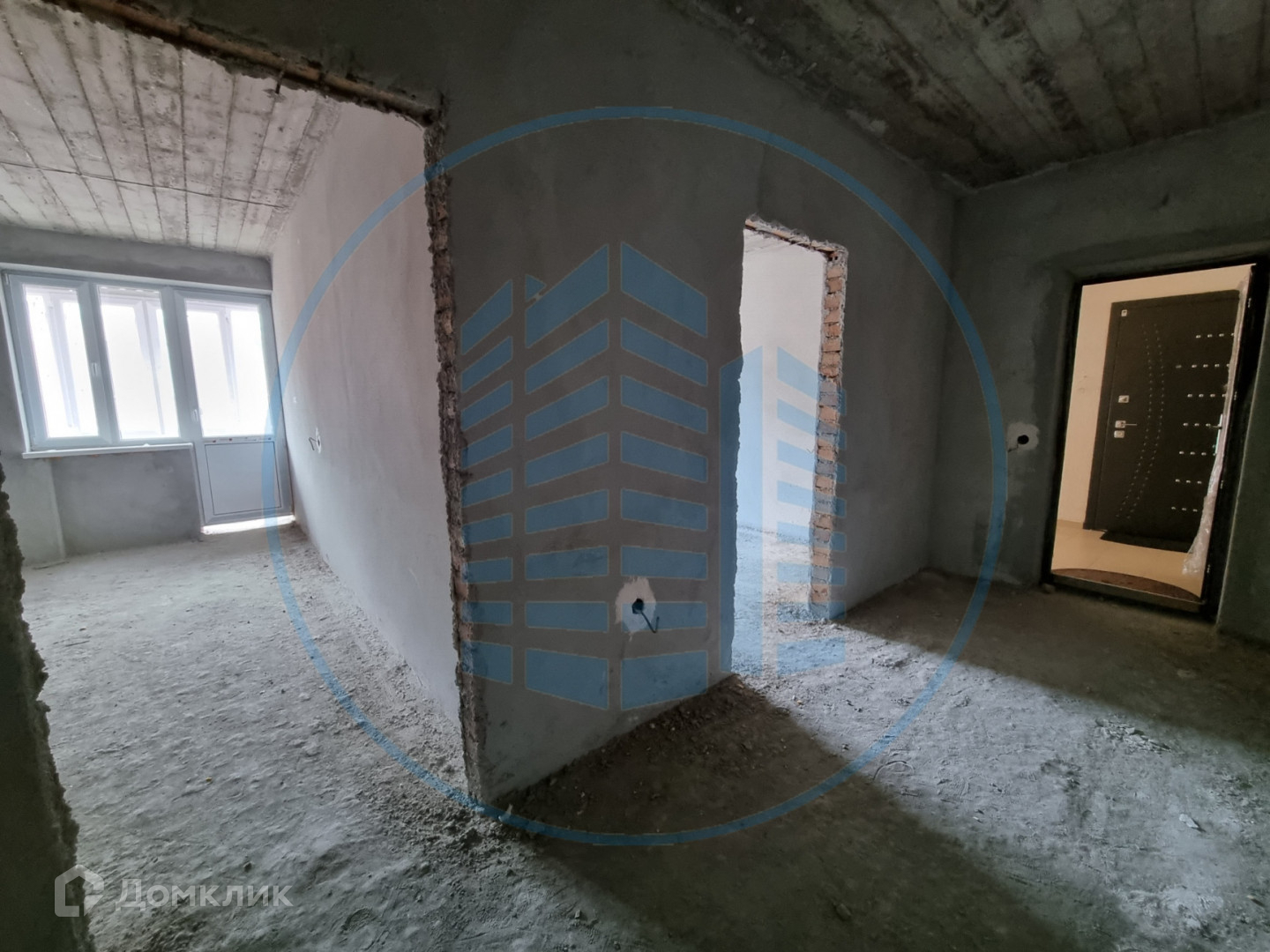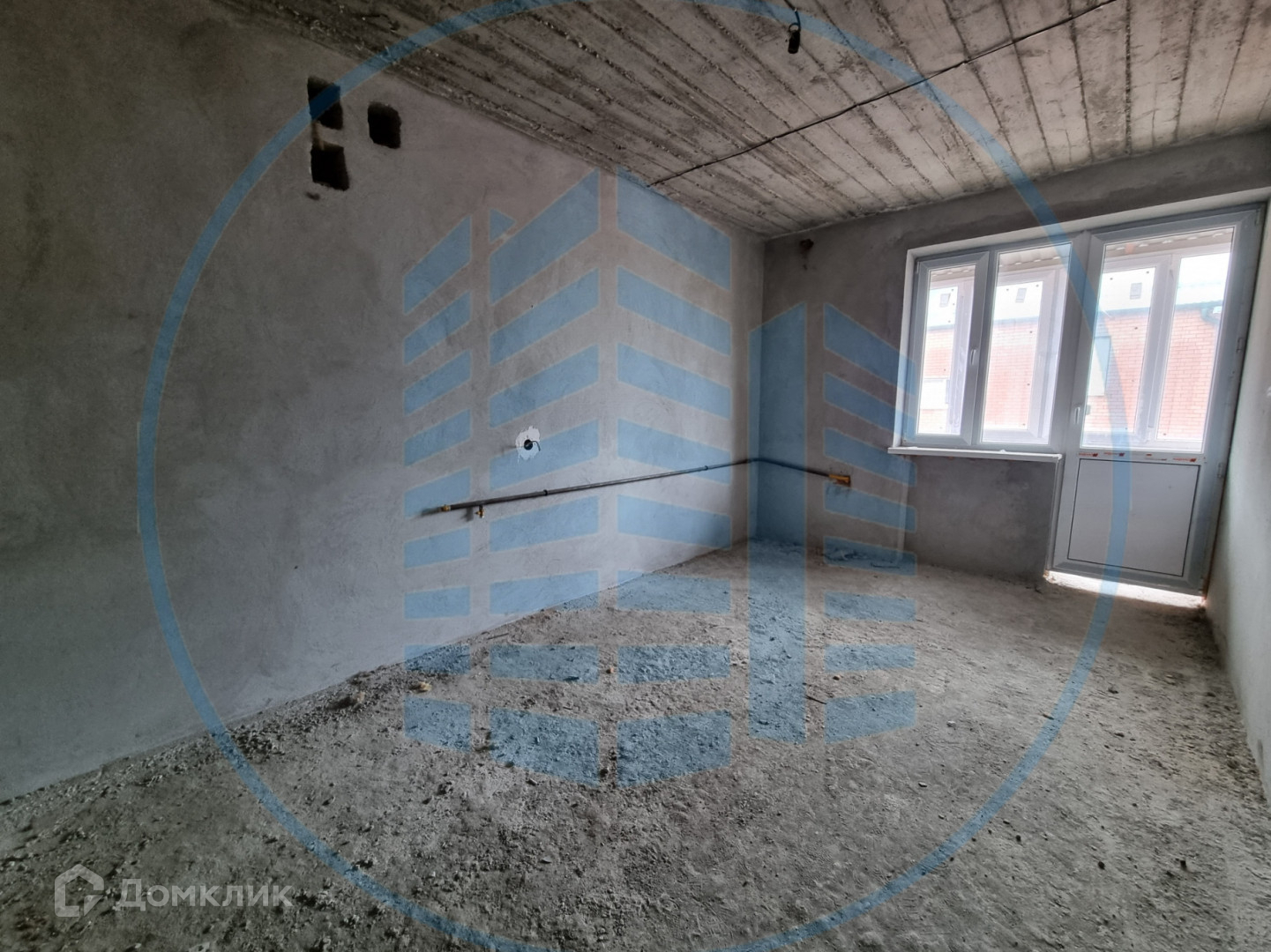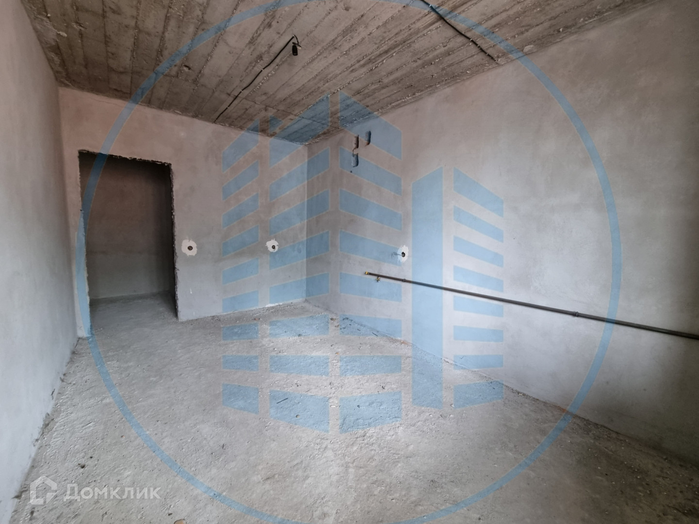 Состояние после строителей: штукатурка стен, разводка электричества, выводы под сантехнику, приборы учета.