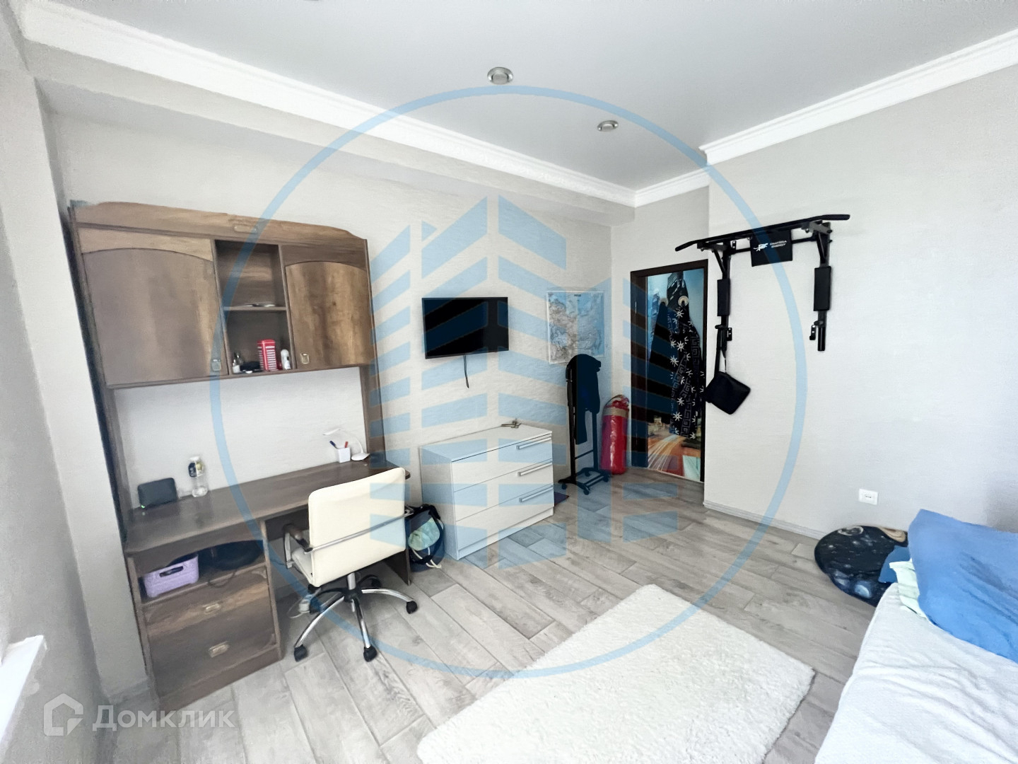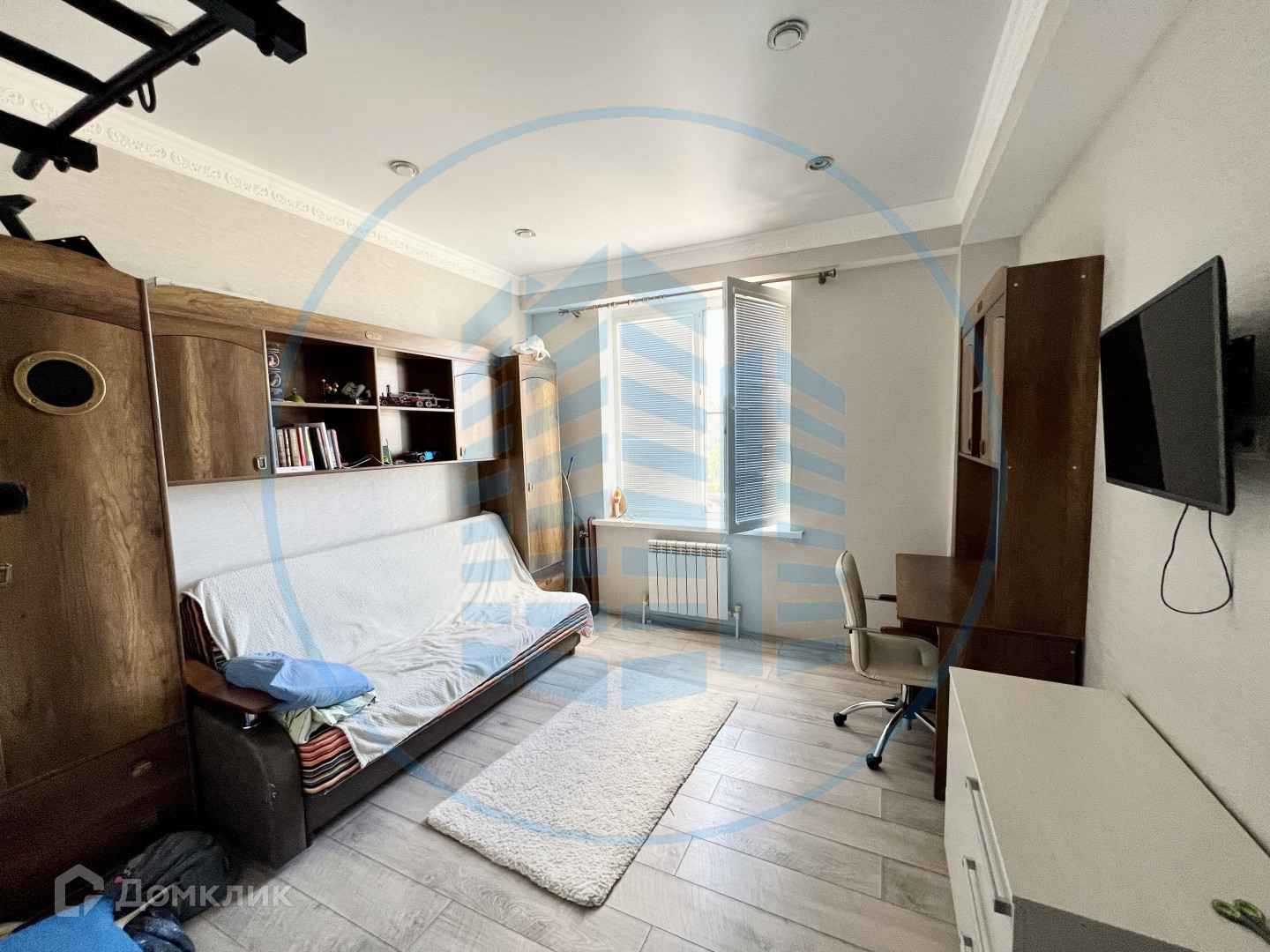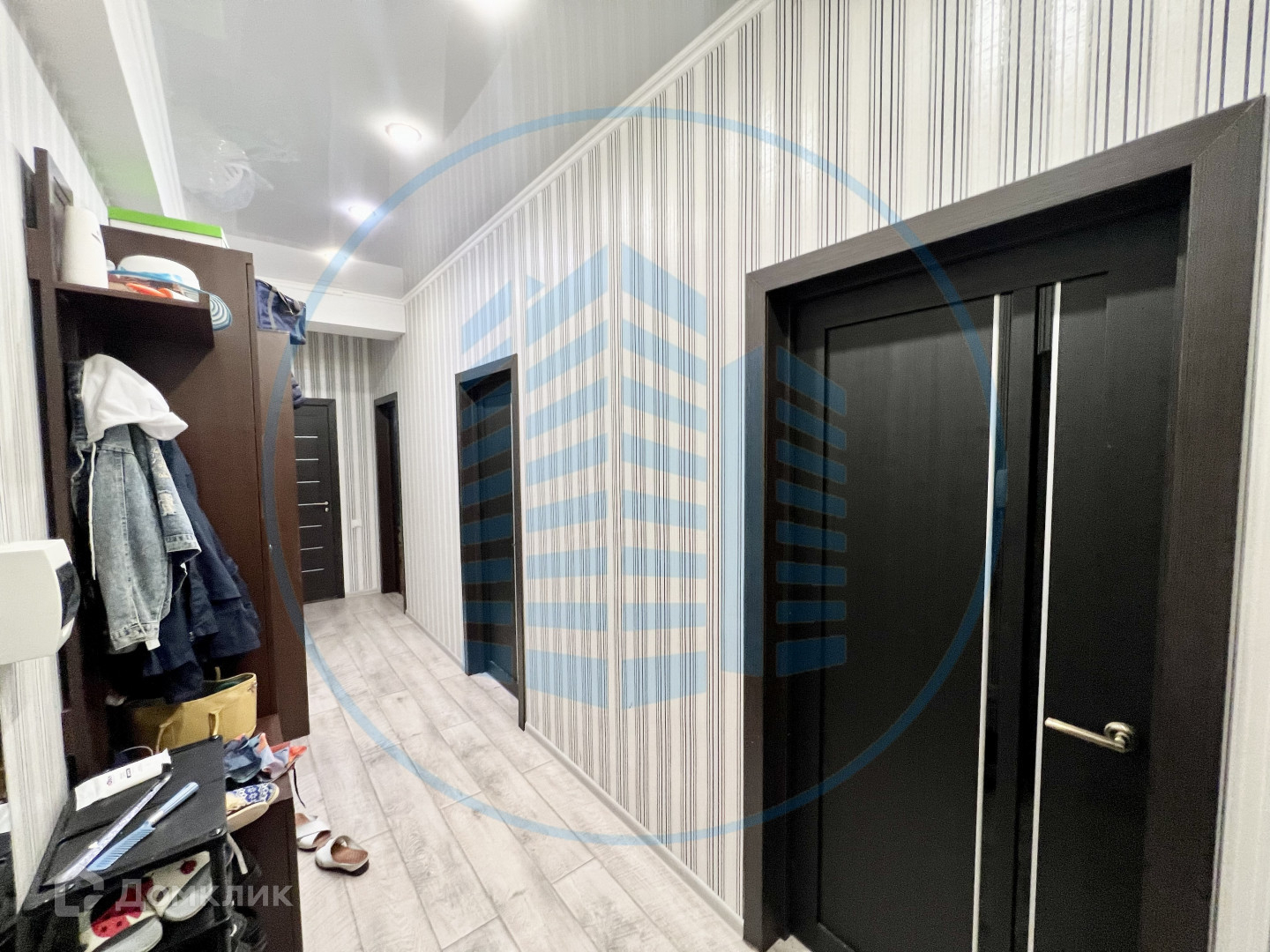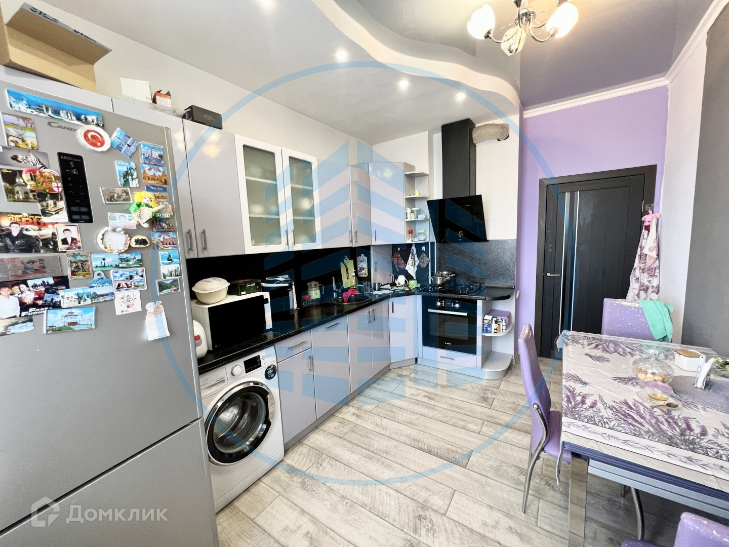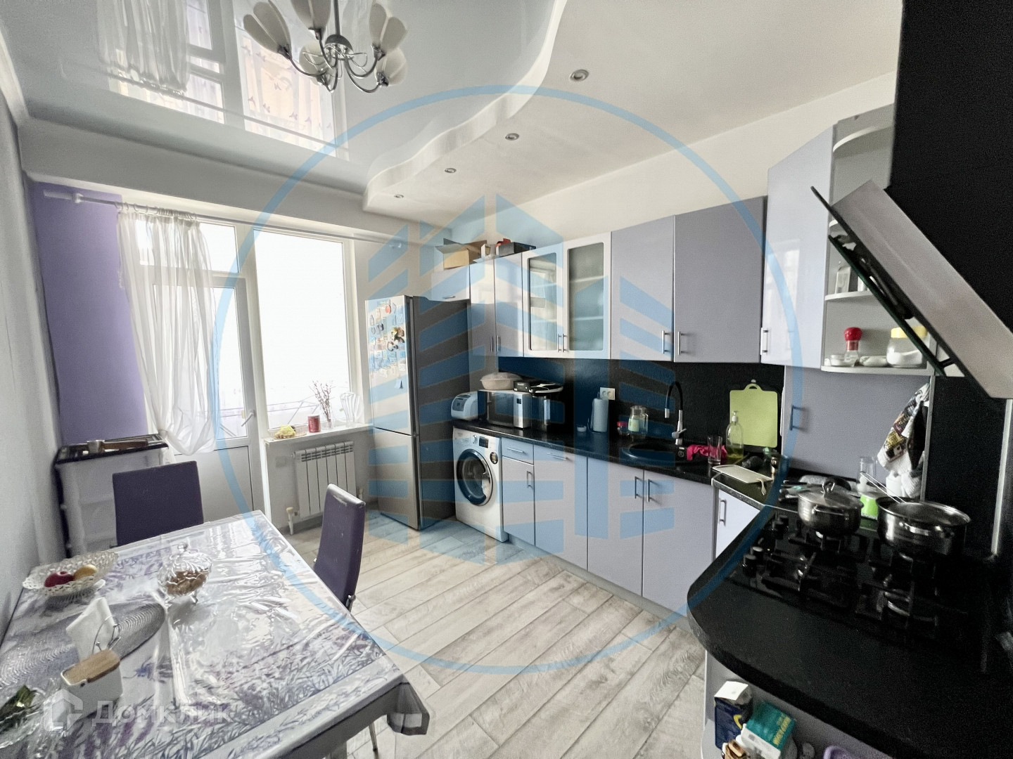В квартире выполнен качественный ремонт: двухуровневые потолки с потолочными светильниками, ламинат, плитка, обои.