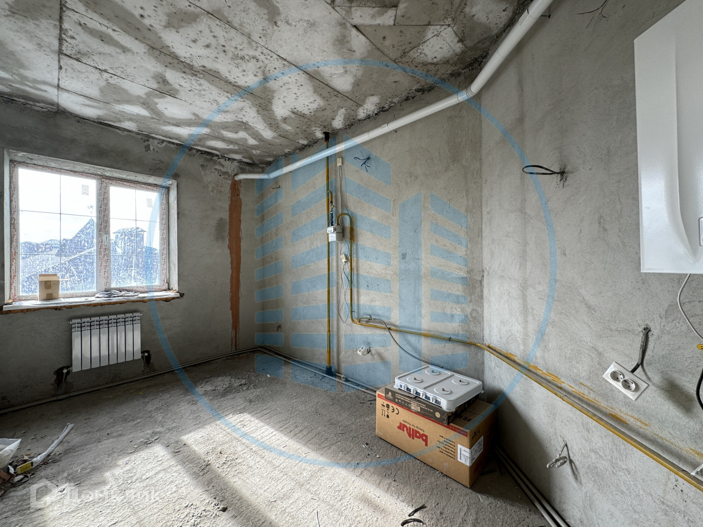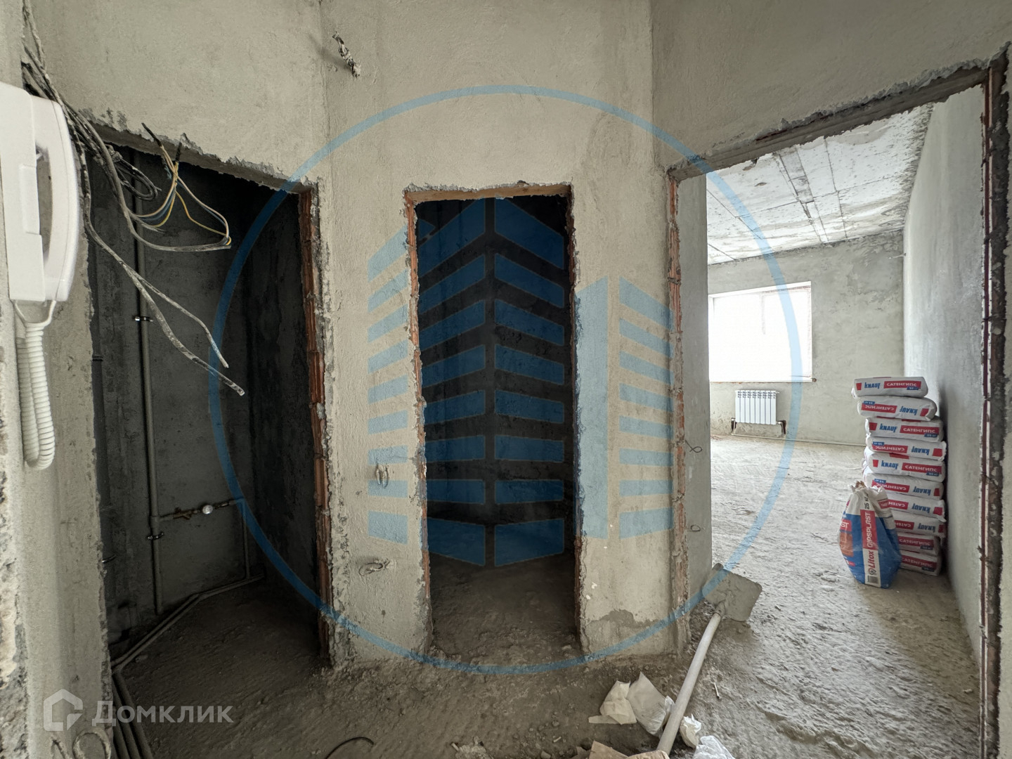 Гипсовая штукатурка, электрика, выходы под сантехнику и приборы учета.