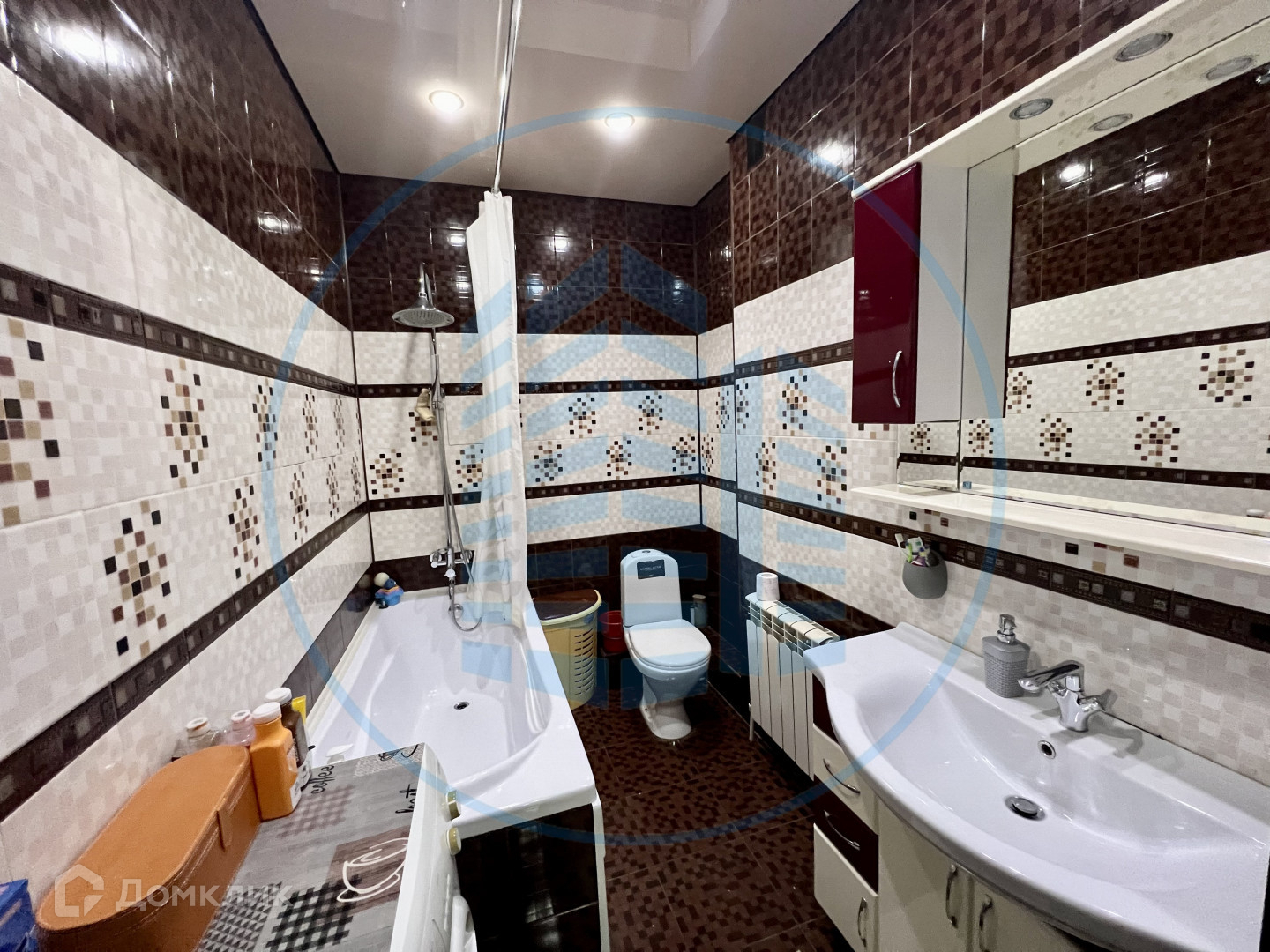 В квартире выполнен ремонт: натяжные потолки, ламинат, плитка, обои.