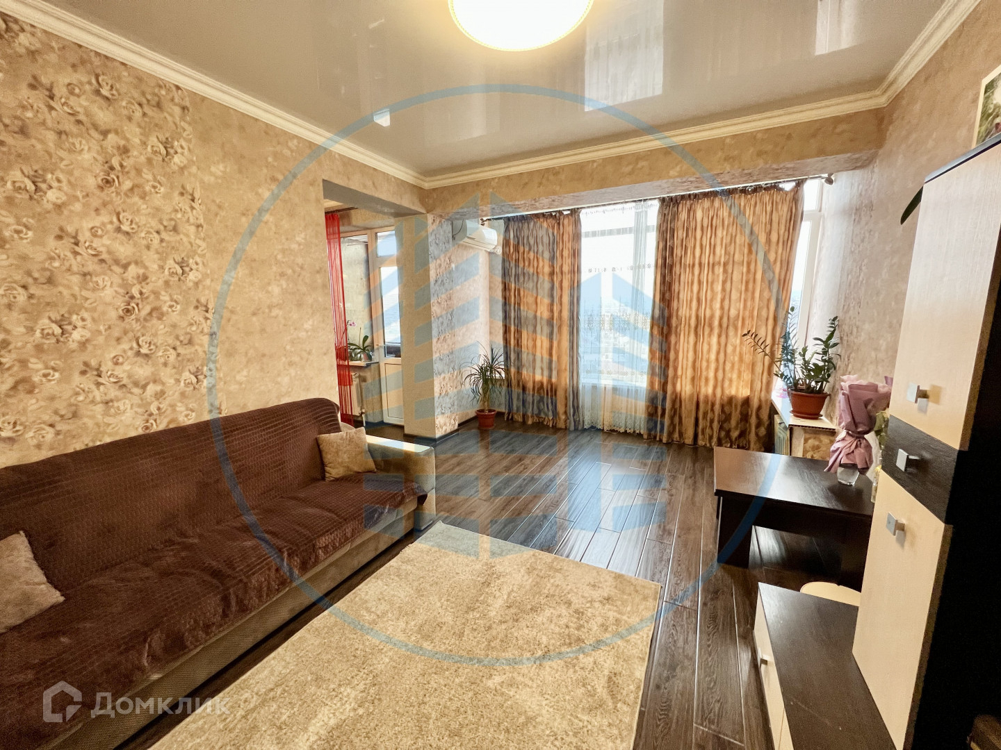 Планировка: кухня с выходом на остекленный балкон, просторный зал, изолированная спальня, гардеробная и санузел;