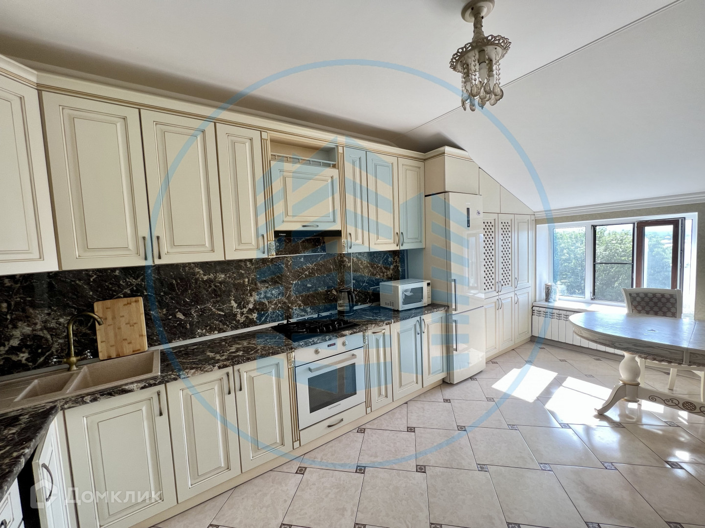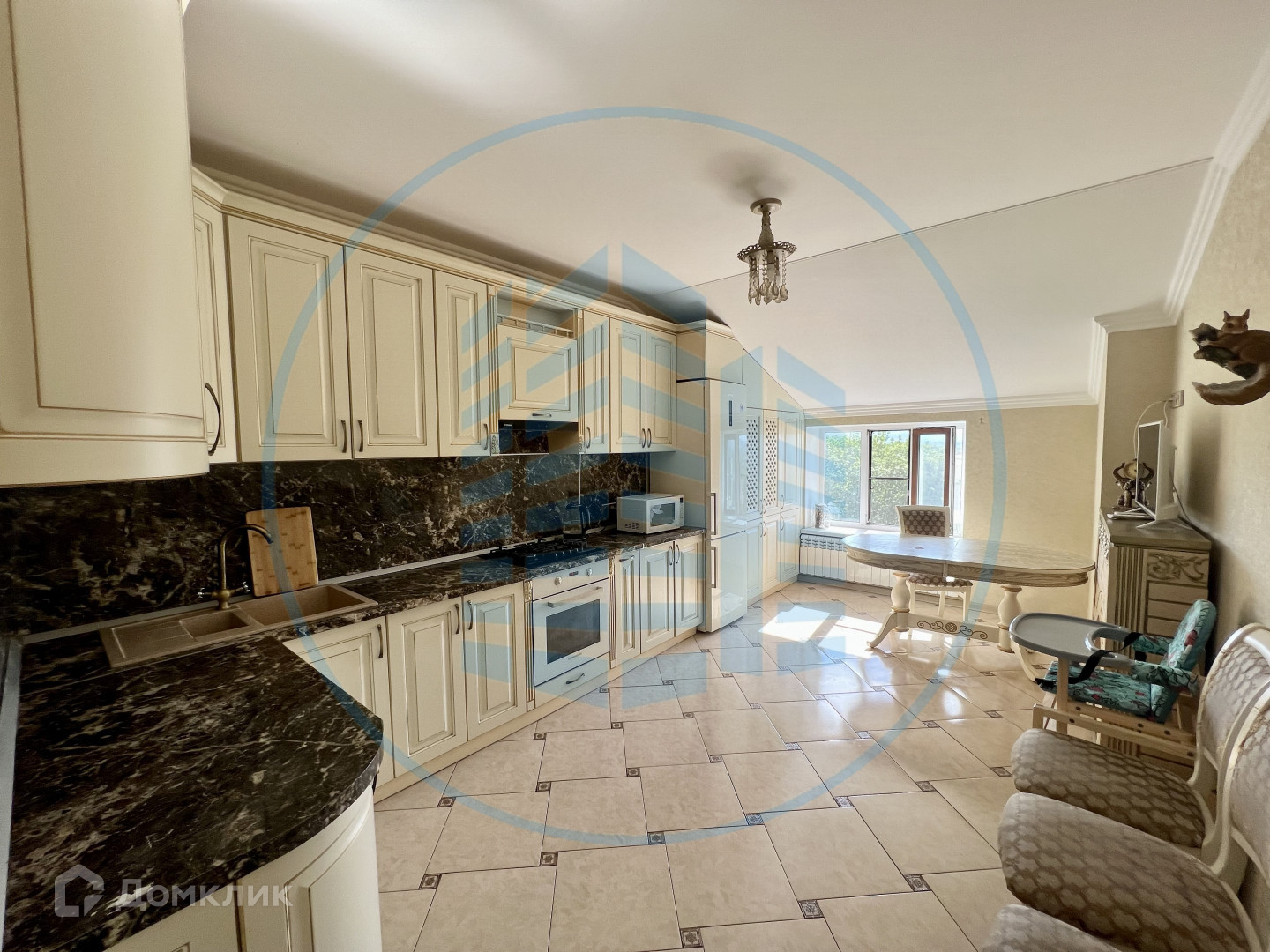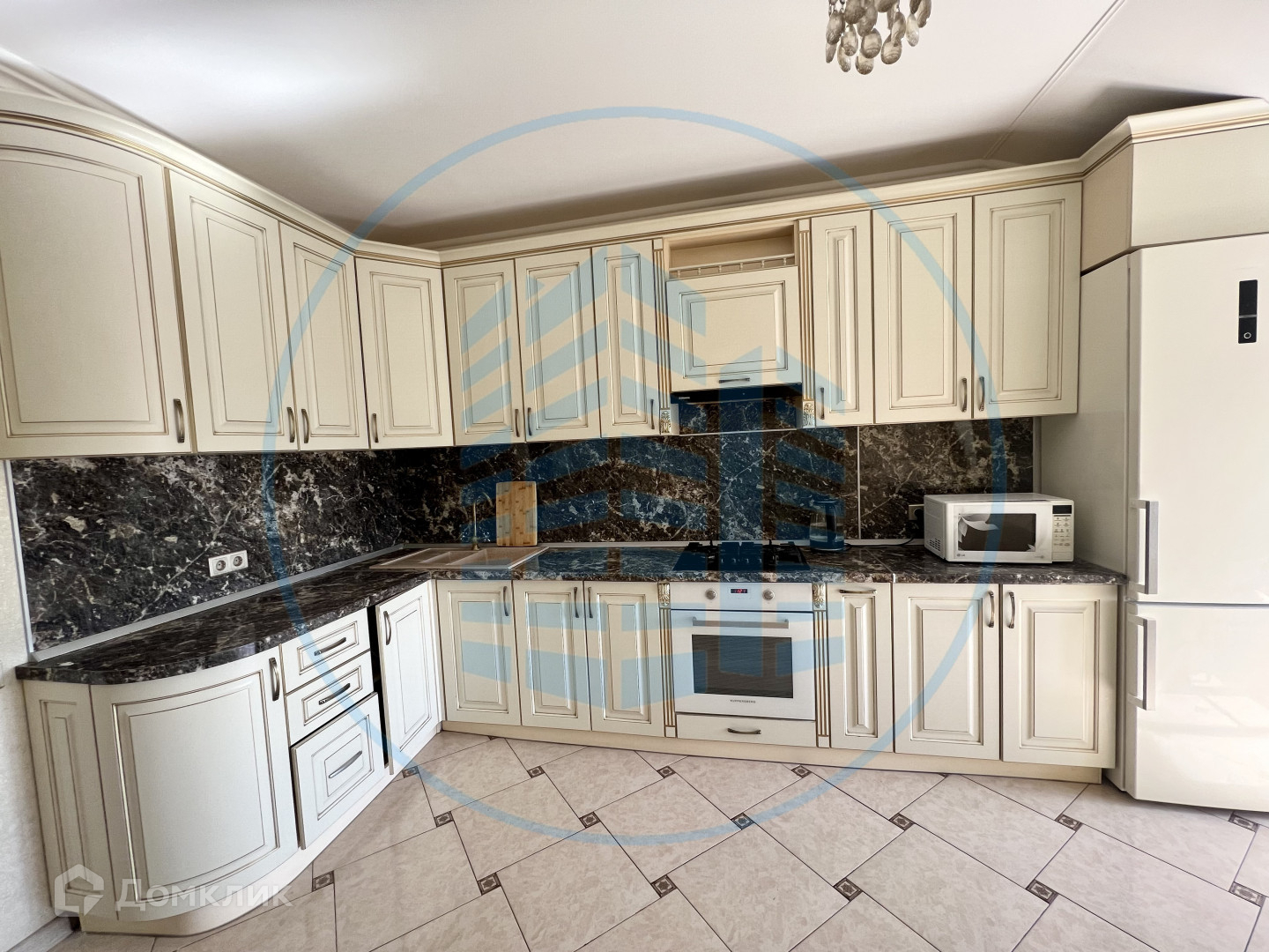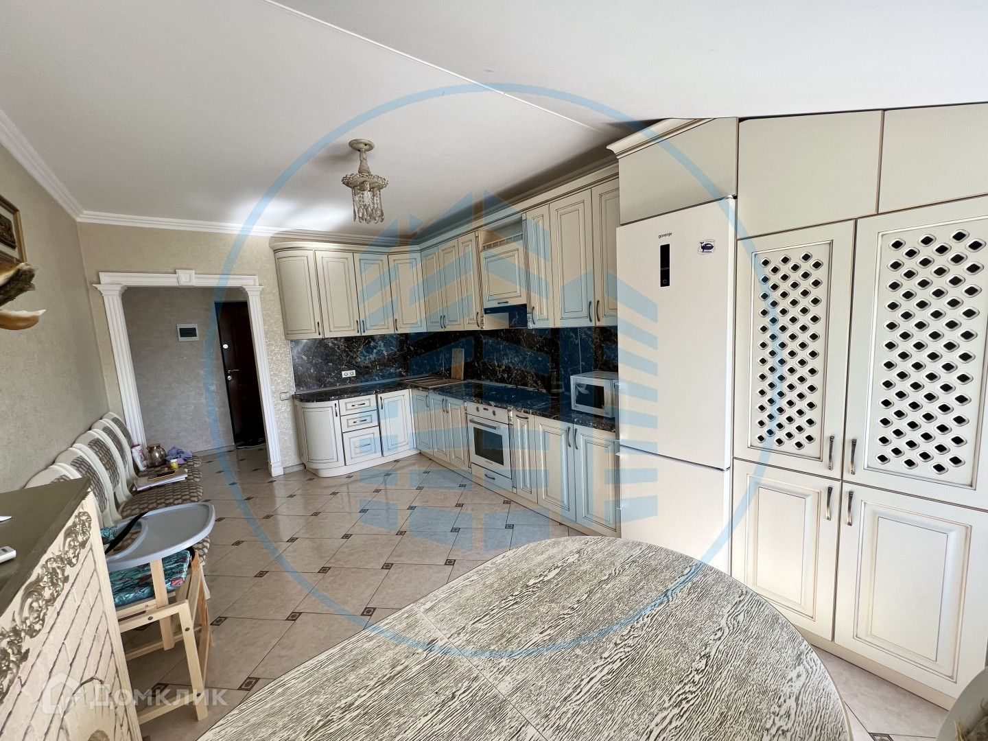 Остается кухонный гарнитур, мебель и техника;