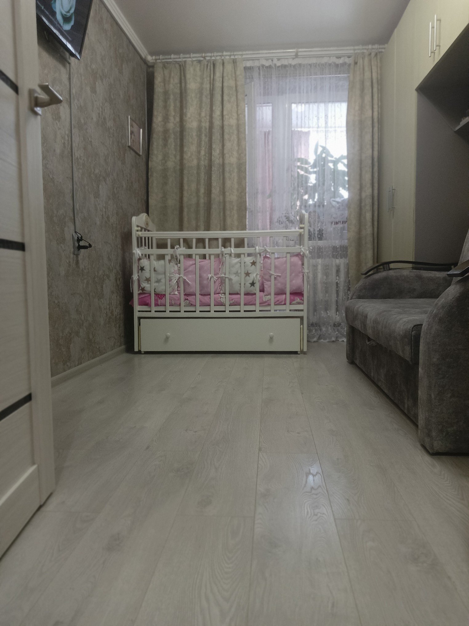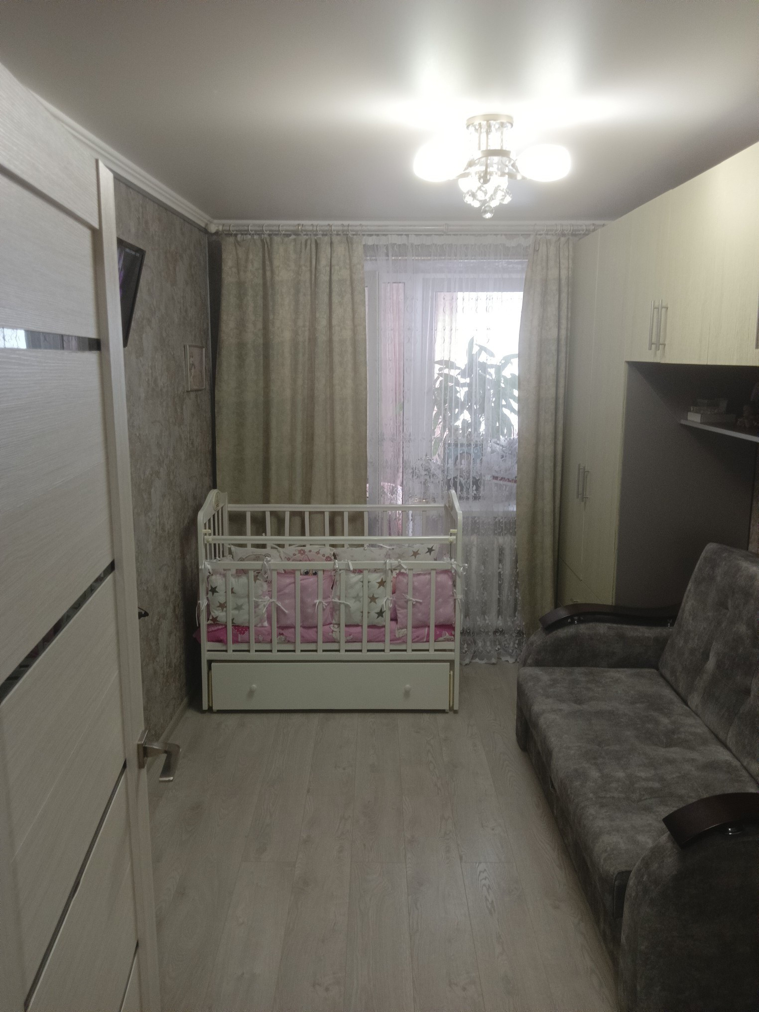 Продается квартира 2 комнаты+лоджия 12 кв.,м. светлая и уютная, лоджия утепленная..Год назад в квартире сделан ремонт... Свет, вода по счётчикам, вся коммуналка в районе 5 тысяч, общее отопление.. Во круг дома освещение и видеонаблюдение..Спортивная и детская площадка, школа и два детских садика, все необходимые магазины и общественный транспорт в шаговой доступности... Можно в ипотеку..В собственности более 5 лет..